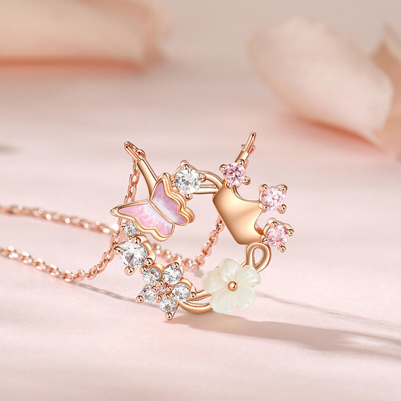 Jeulia Princess Crown Shell Flower Butterfly Necklace Sterling Silver