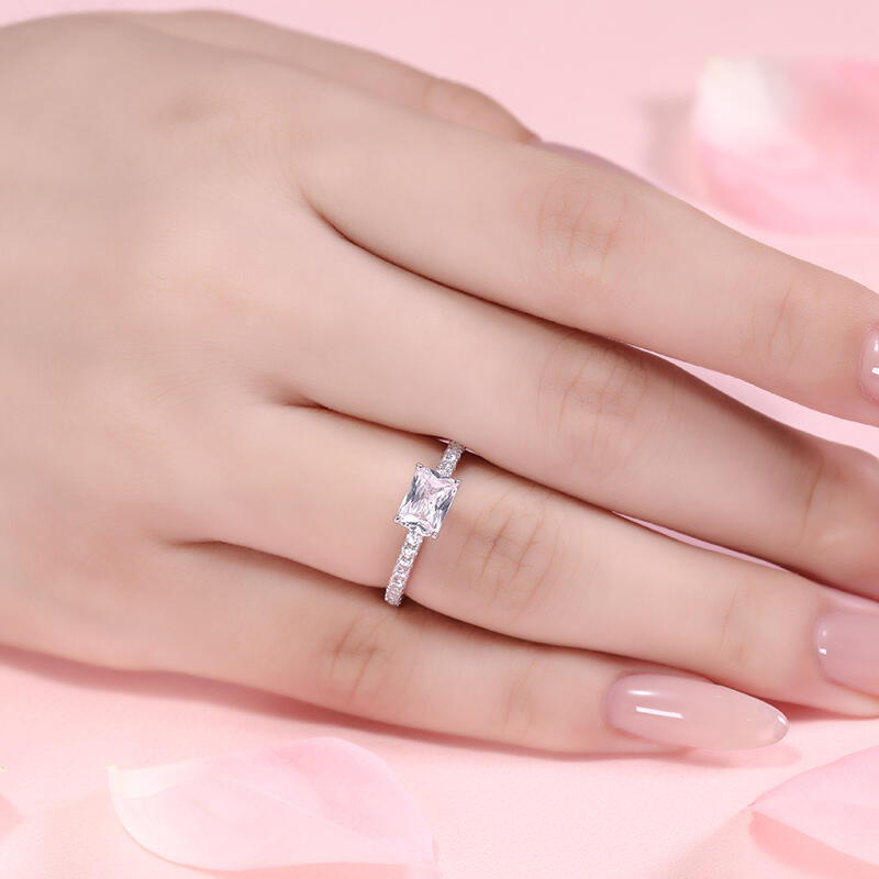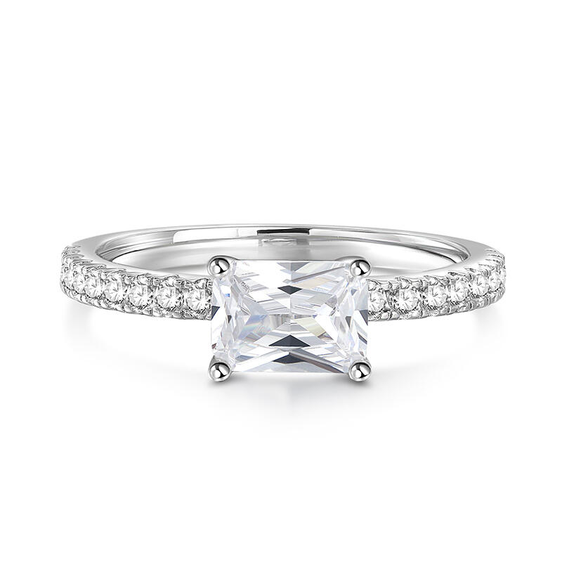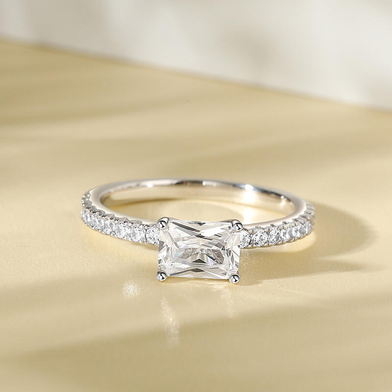 Jeulia Radiant Cut East West Sterling Silver Engagement Ring