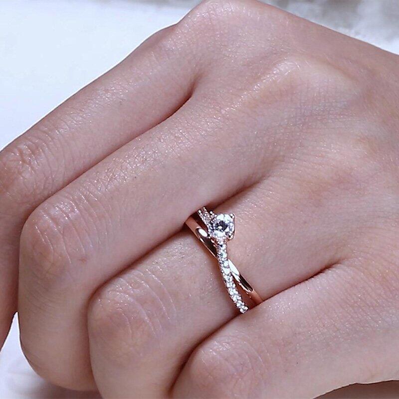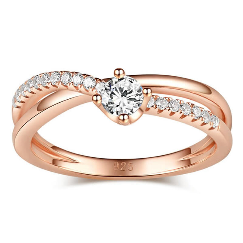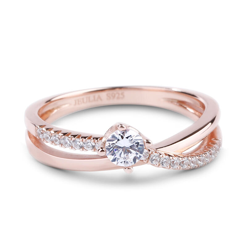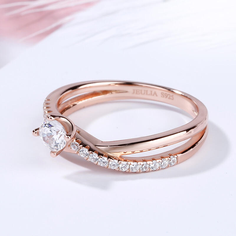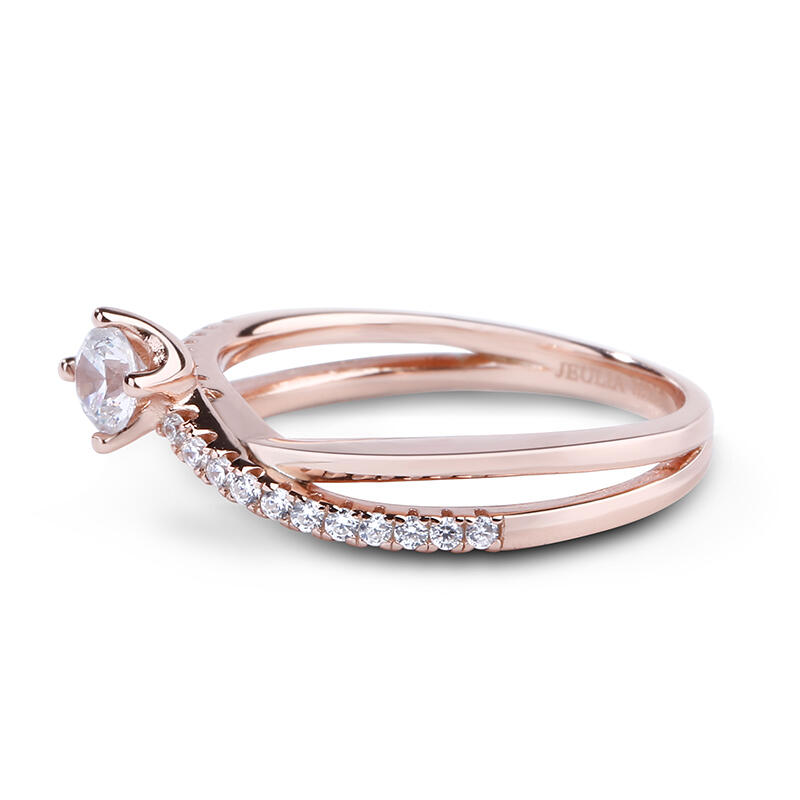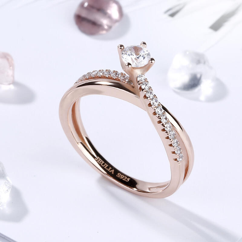 Jeulia Rose Gold Tone Round Cut Sterling Silver Promise Ring
