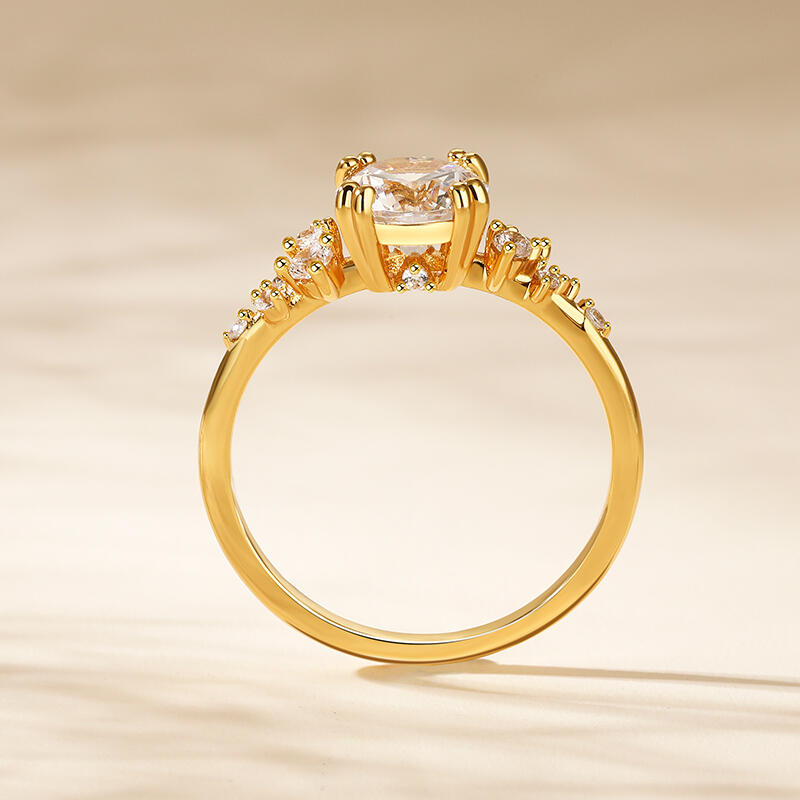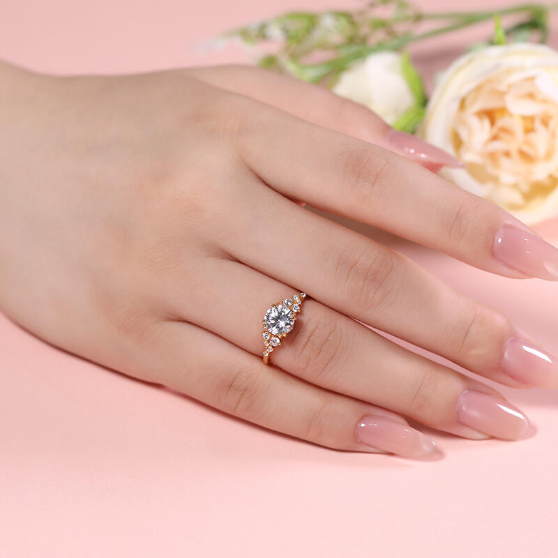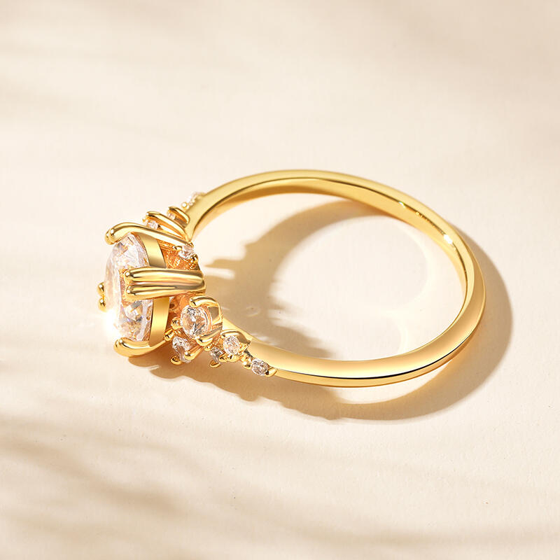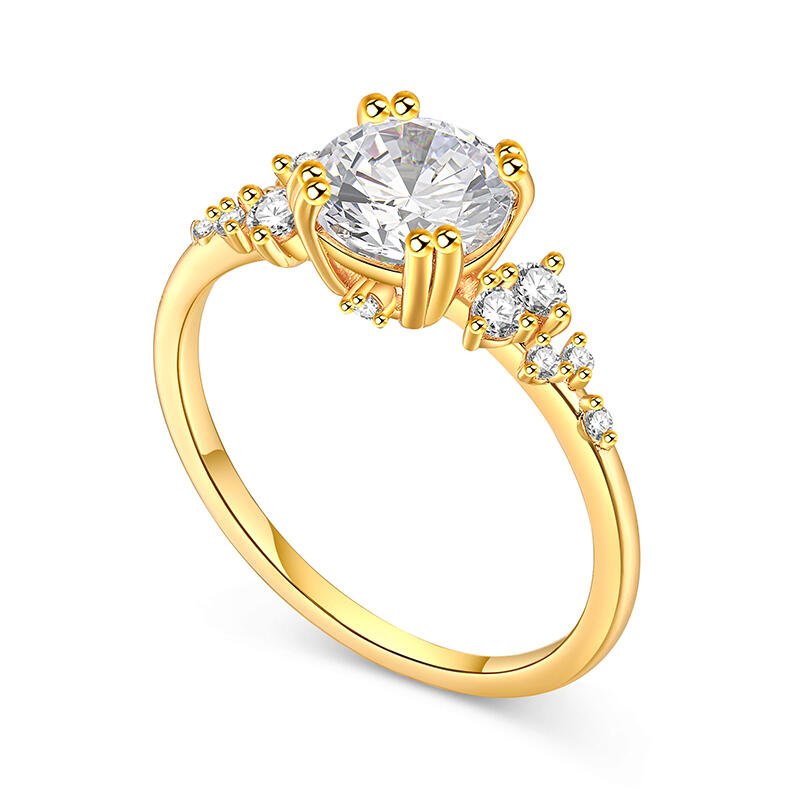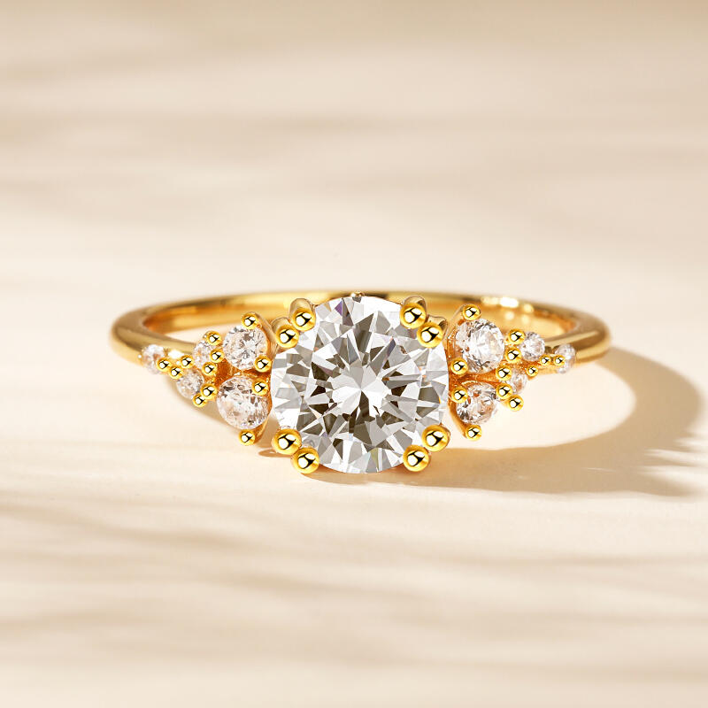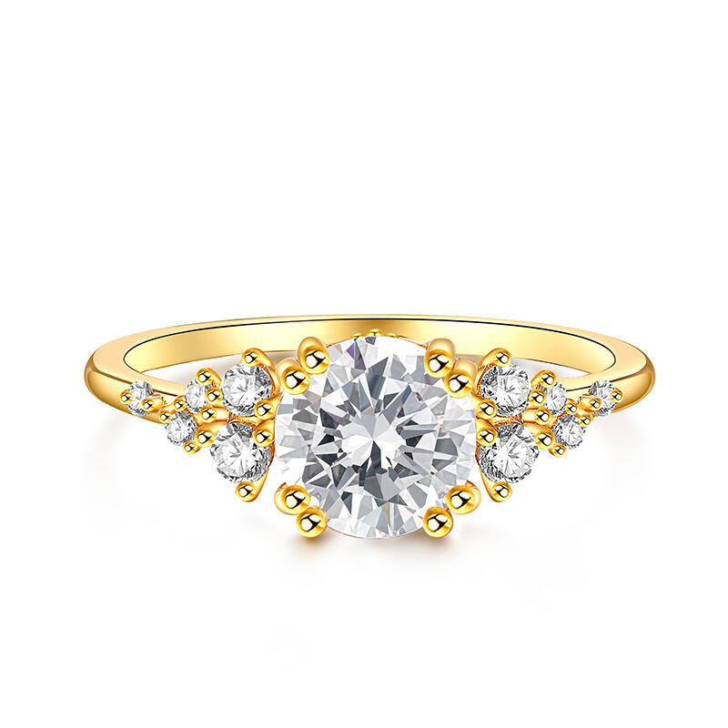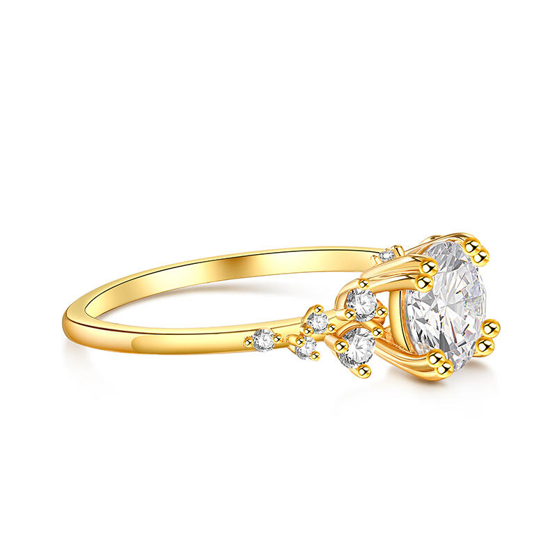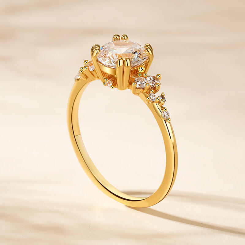 Jeulia Round Cut Gold Tone Cluster Ring Sterling Silver