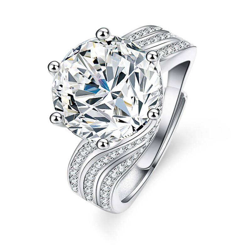 Jeulia Round Cut Three Lines Shank Sterling Silver Open Ring