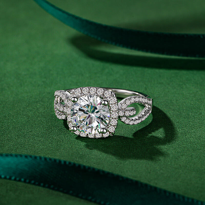 Jeulia Round Halo Engagement Ring with Hollowed Band