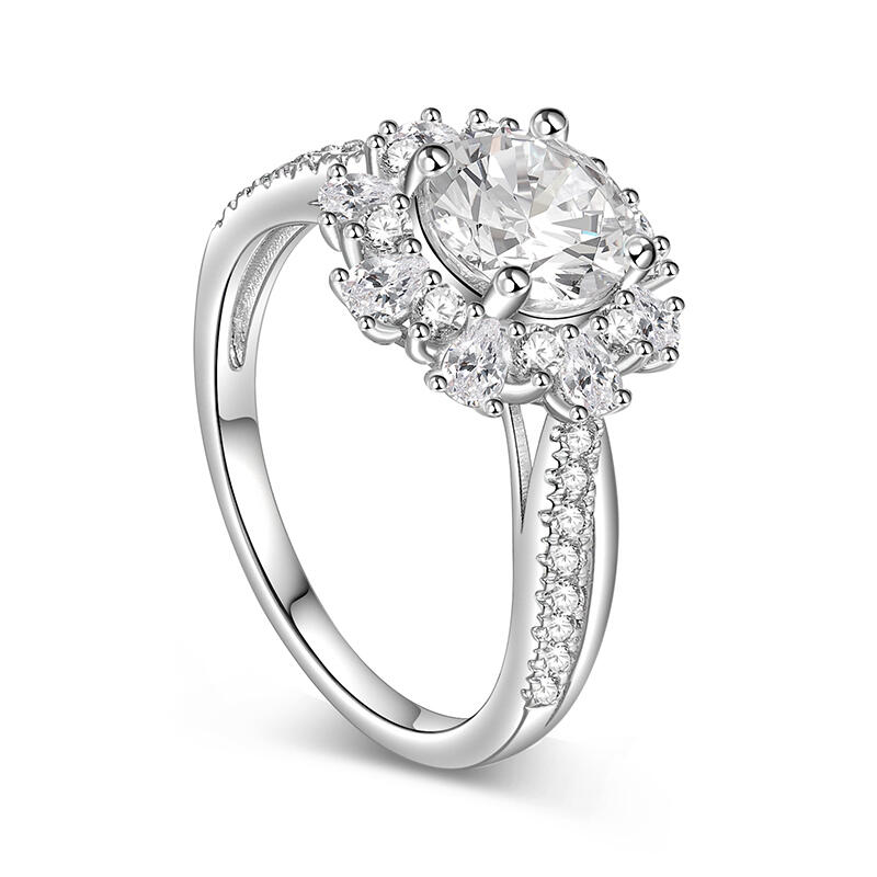 In this exquisite Engagement Ring, the Halo element that surrounds the main band sparkles with starlight splendor. The beautifully twisted design of the band arm is elegant and contemporary, blending perfectly with the main ring. Sterling silver is light and comfortable on your fingers. Whether it's a flash of light or a quiet moment, this halo engagement ring will be a precious testament to your journey of love. Choose this ring to add a touch of sparkle to your commitment and love.