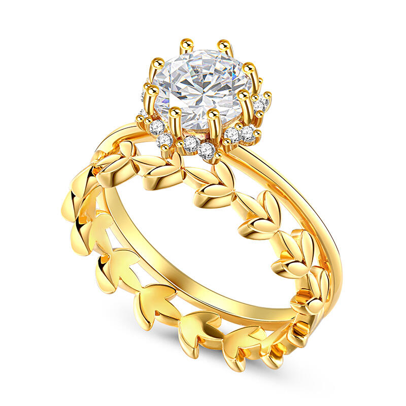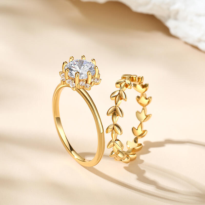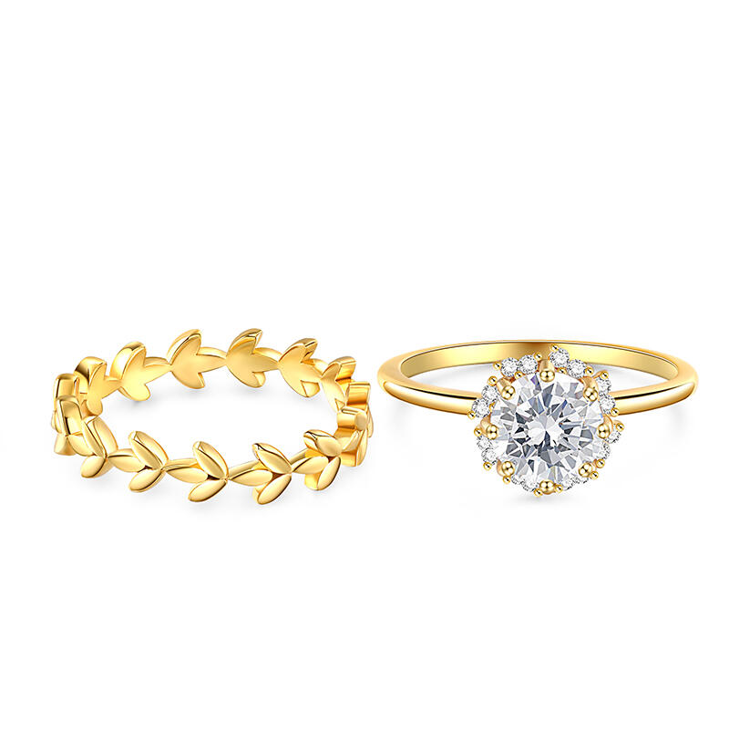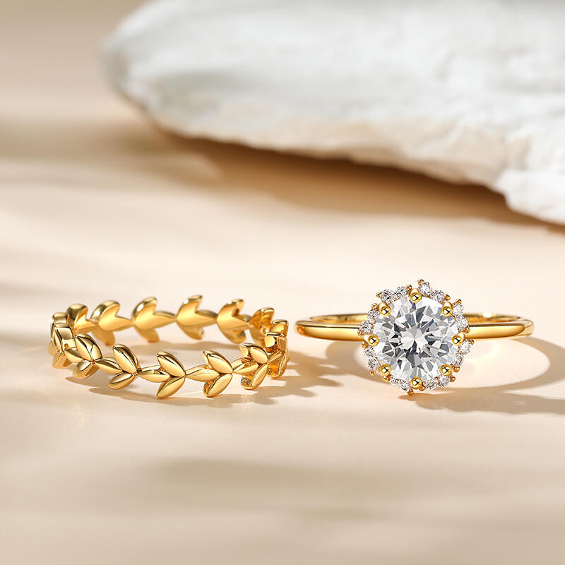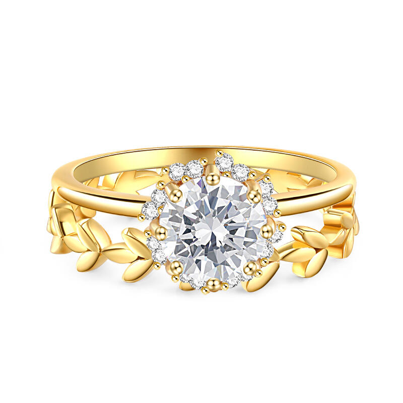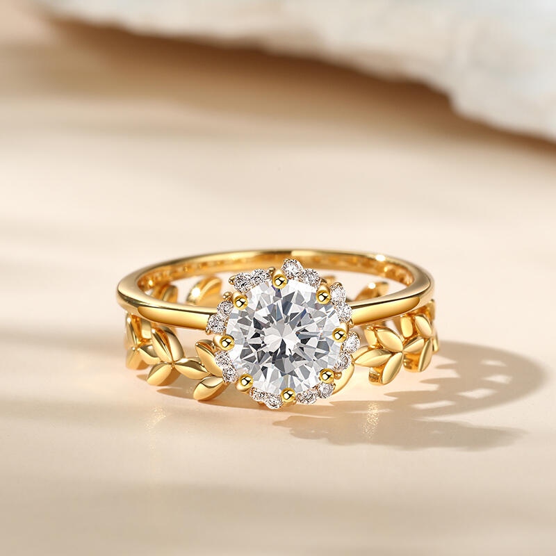 Jeulia Sapling Halo Round Cut Sterling Silver Ring Set