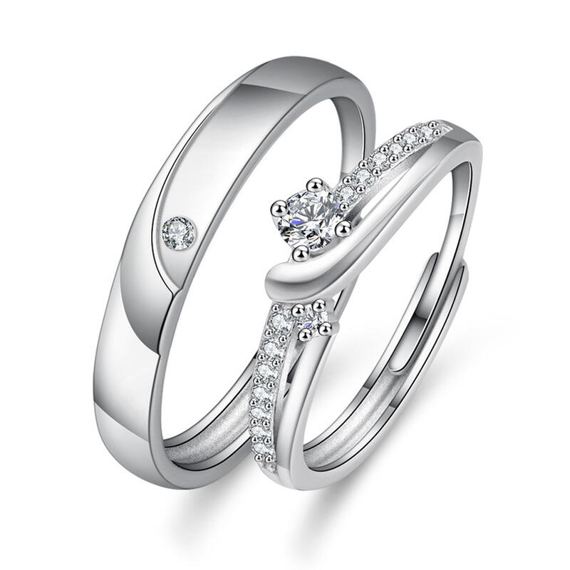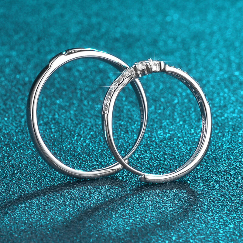 Jeulia Sea Double Stone Sterling Silver Couple's Rings