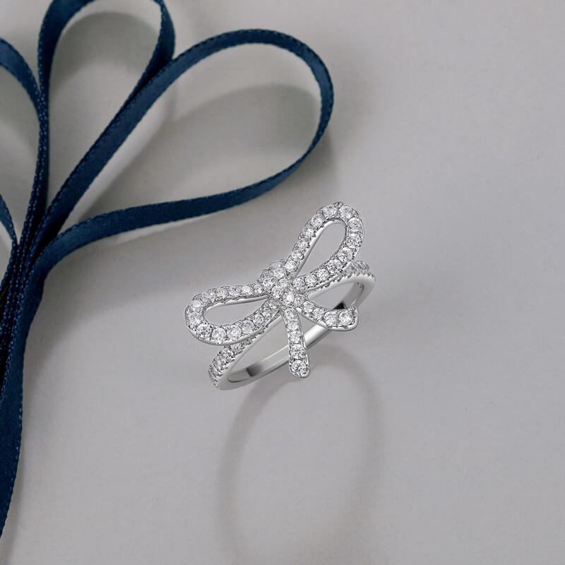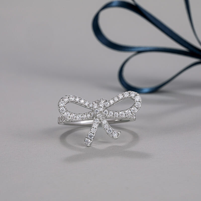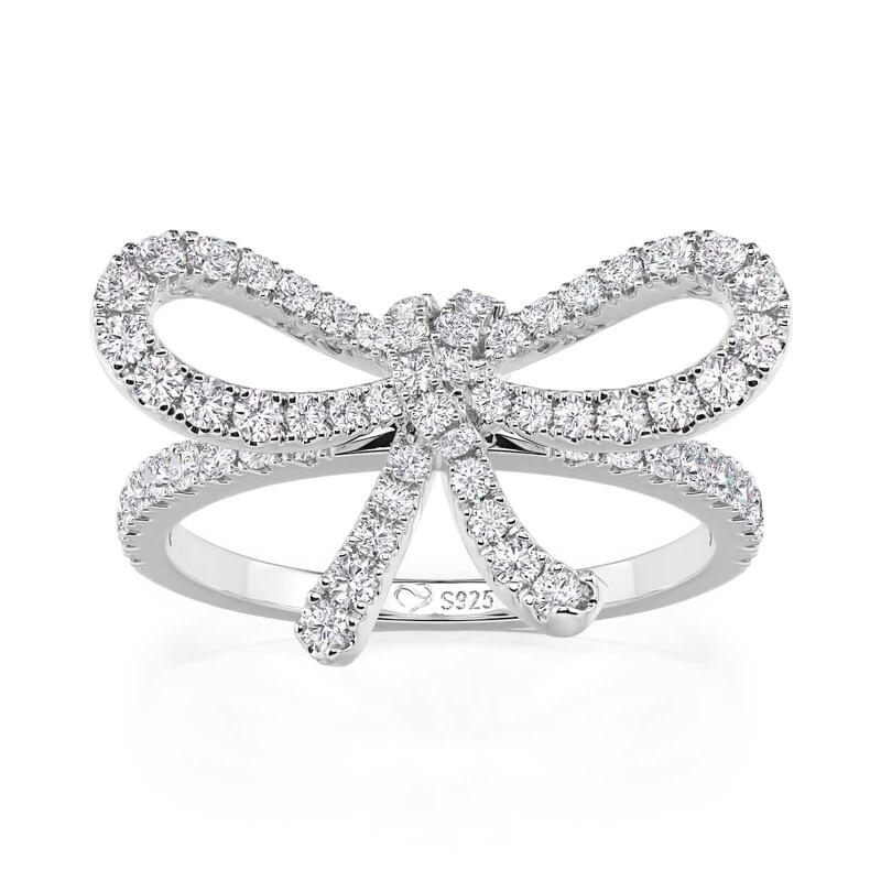 This exquisite shimmer sterling silver bow ring features a beautifully crafted bow design, adorned with a cascade of shimmering pavé-set stones that glisten with every movement. The intricate detailing of the ribbon-like structure exudes a playful sophistication, making it a perfect statement piece for any occasion. Its unique silhouette captures the essence of femininity and grace, ensuring it stands out in any jewelry collection. Meticulously designed for comfort and style, this ring can be effortlessly paired with both casual and formal attire. Let the Jeulia shimmer sterling silver bow ring be a delightful addition to your accessory wardrobe, symbolizing the joy and celebration of life’s special moments. Elevate your look with this charming piece that radiates beauty and elegance.