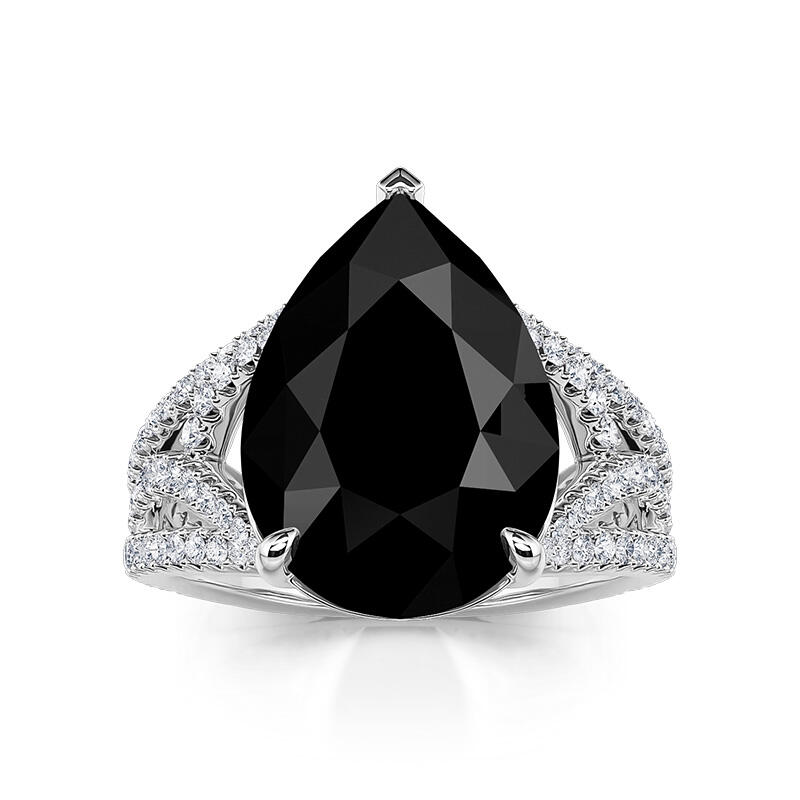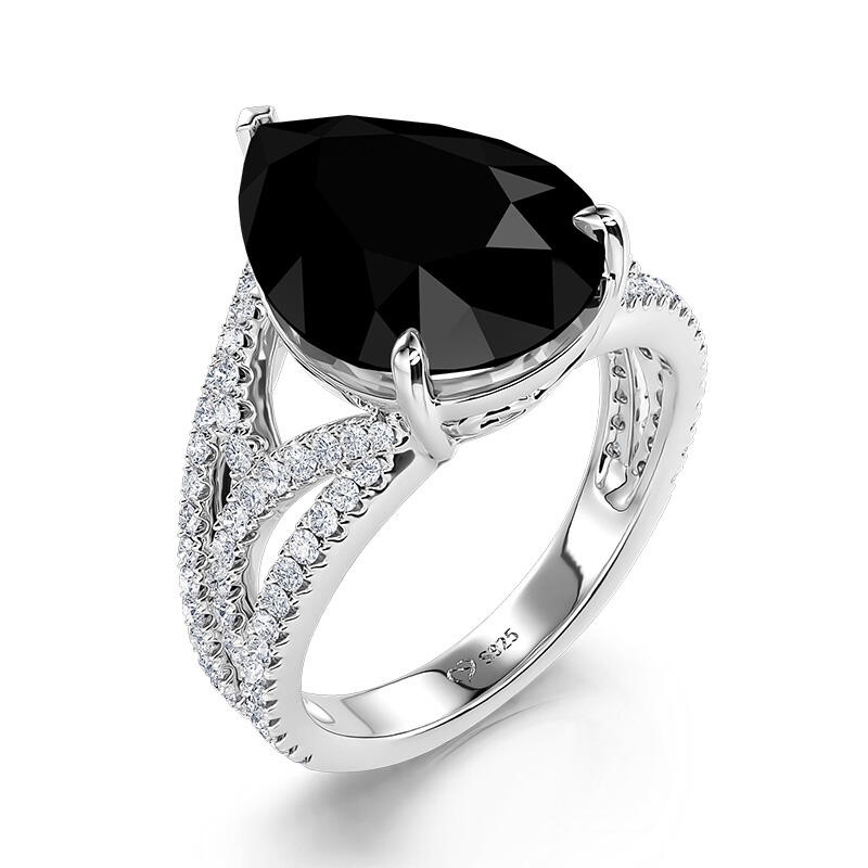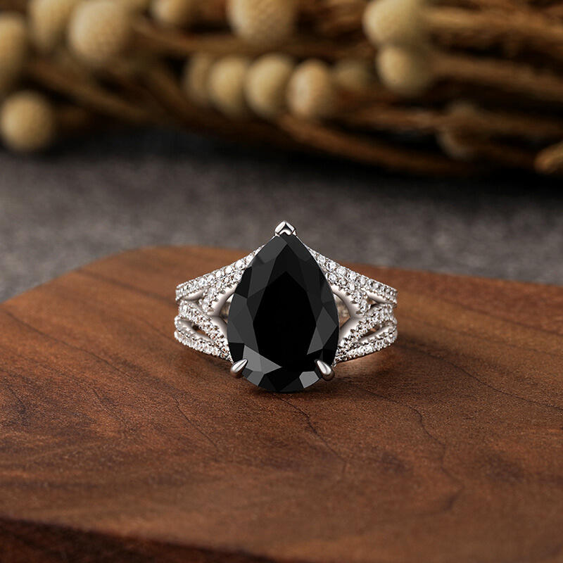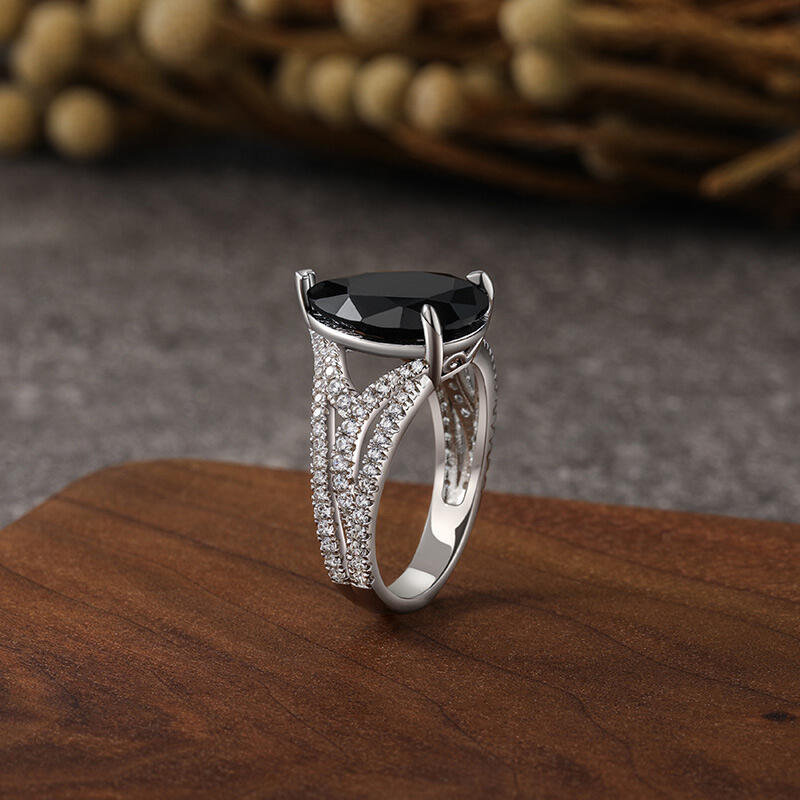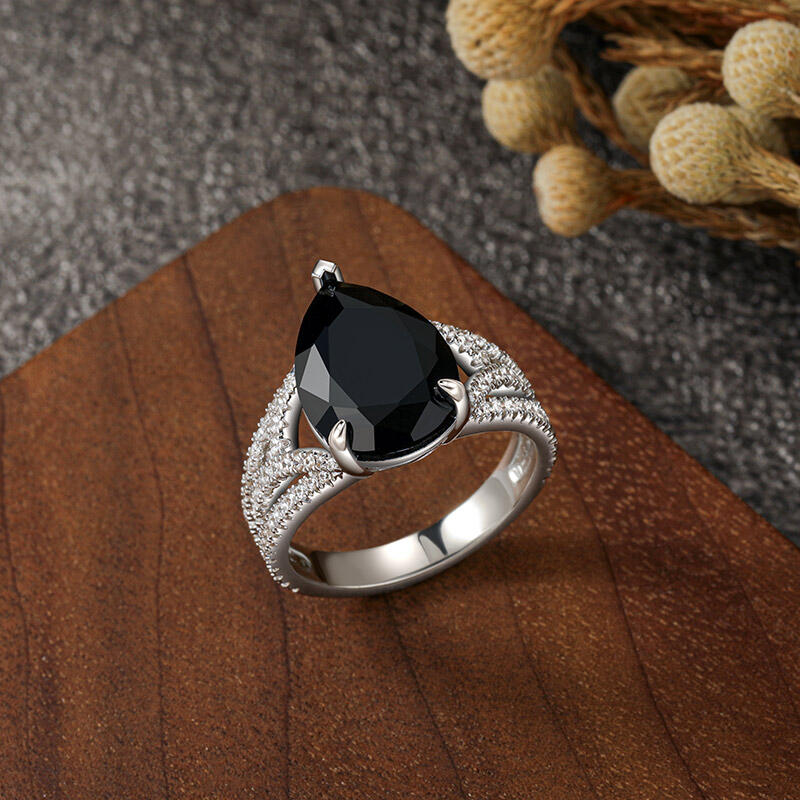 This black pear engagement ring exudes a mysterious, dark style that resembles a challenging and passionate adventure. The lines of thorn gemstones subtly wrap around the black pear-shaped main stone in a unique design. This black engagement ring is a blend of fortitude and delicacy, symbolizing the mingling of two hearts and minds. Every detail reveals deep affection, and every thorn bears witness to the love between two people. Let this black pear engagement ring witness the eternity of your love and carry the promise of a bright future.