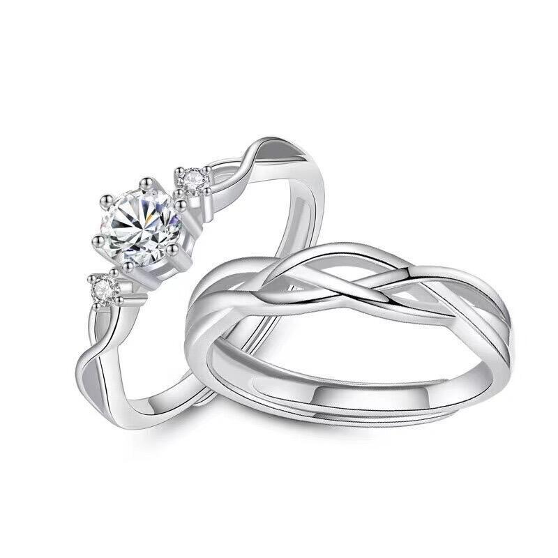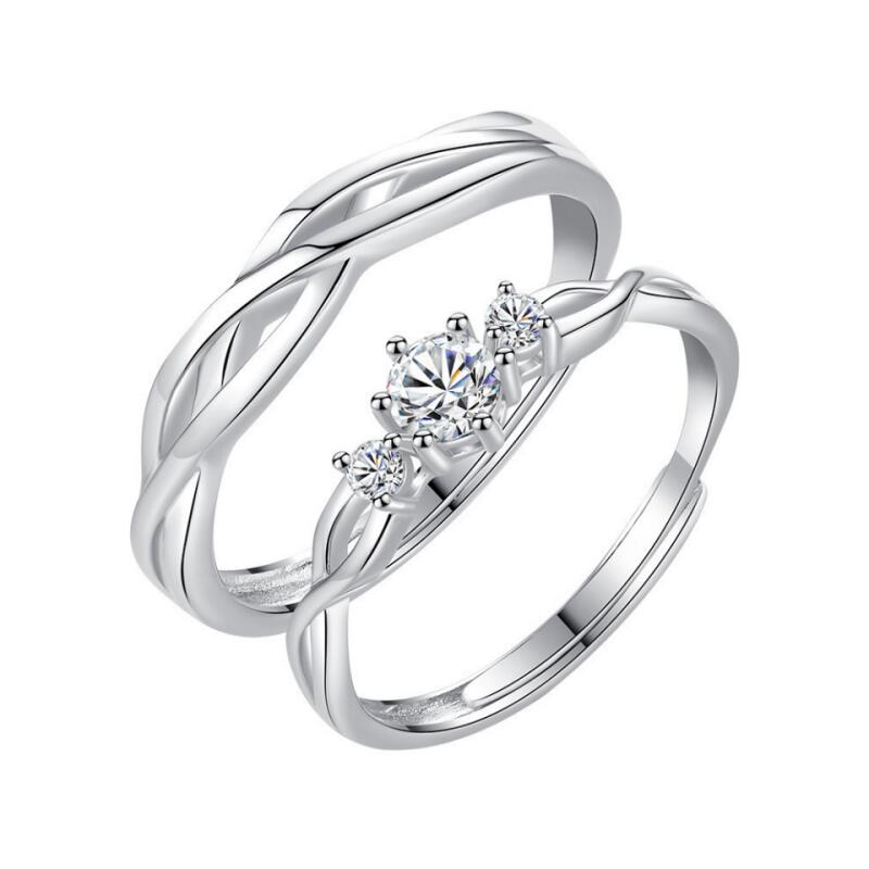 Jeulia Simple Couple Rings Three Stone Twist Hollow Adjusted Sterling Silver