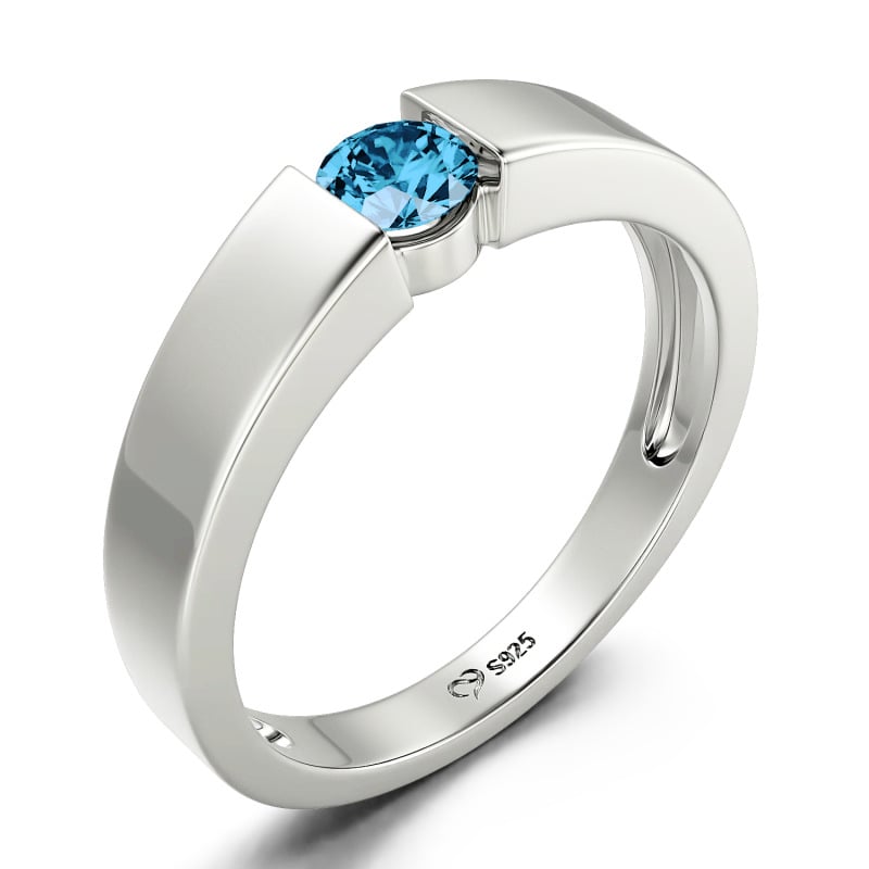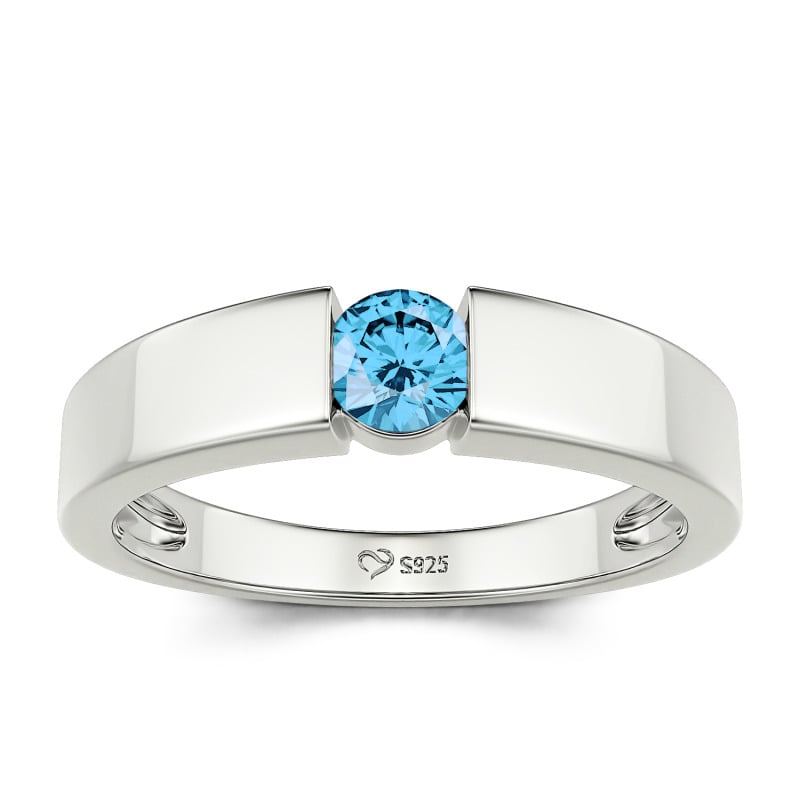 Jeulia Simple Round Cut Men Engagement Ring Sterling Silver