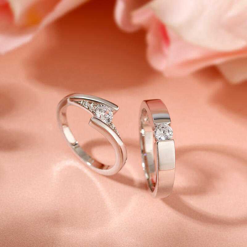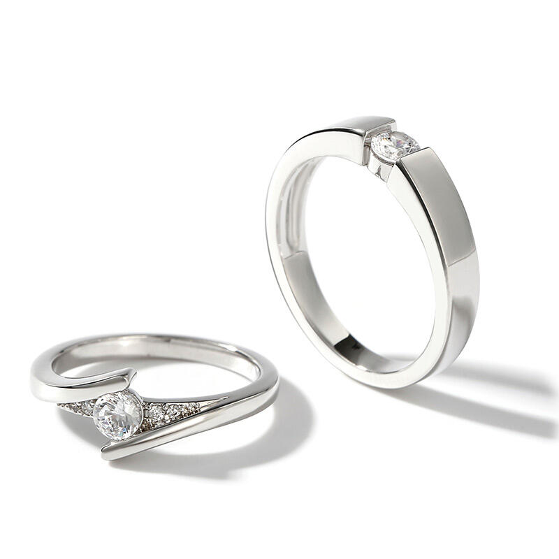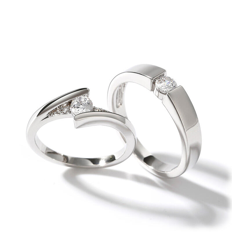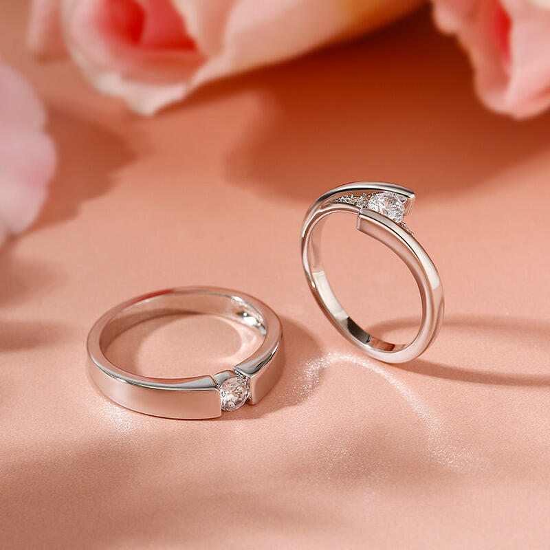 A very classic and elegant round-cut solitaire custom couple's ring set. The simple women's ring is made of 925 silver and features a sparkling round diamond in the center, with a few smaller diamonds on either side to create a glamorous shine. The men's ring has a simple and generous shape, also in silver, highlighting the sheer beauty of the main diamond. As a whole, this pair of couple rings is beautifully designed and full of the romantic flavor of love, and can be worn on both women's and men's hands to show off their noble and elegant temperament. This classic and timeless design is sure to become an everlasting token of love for the couple.
