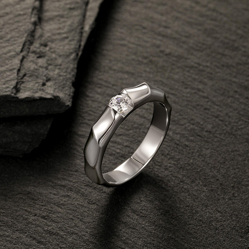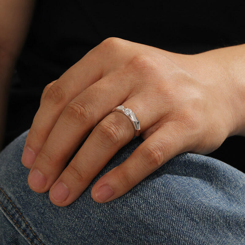 Jeulia Simple Solitaire Twisted Ribbon Men's Ring