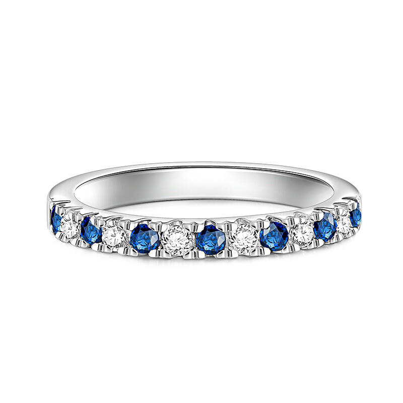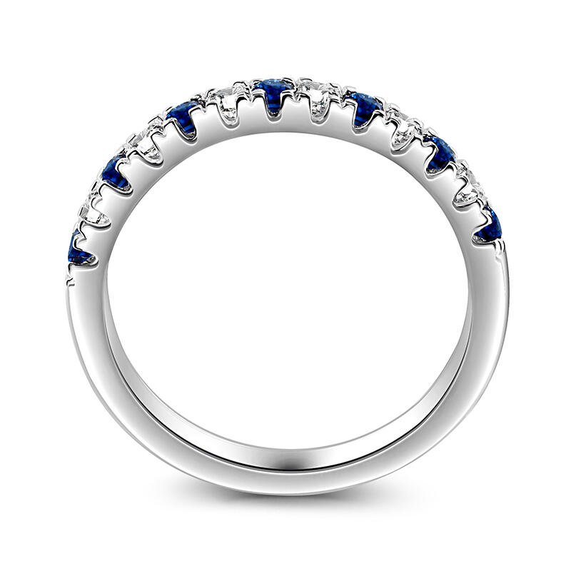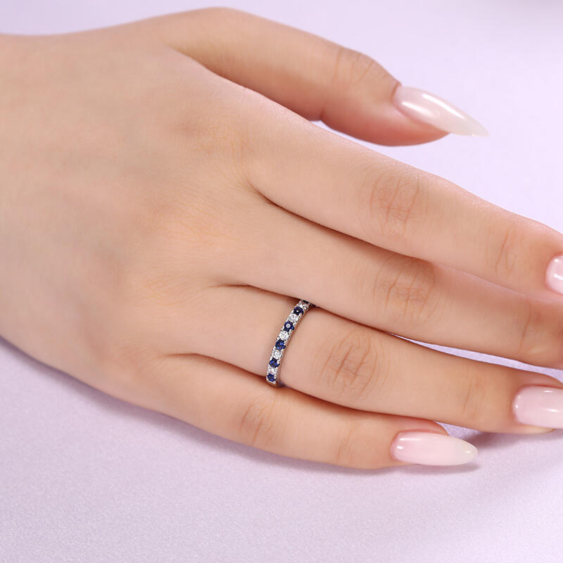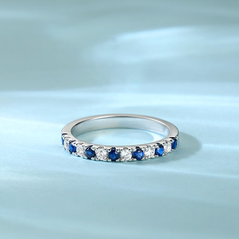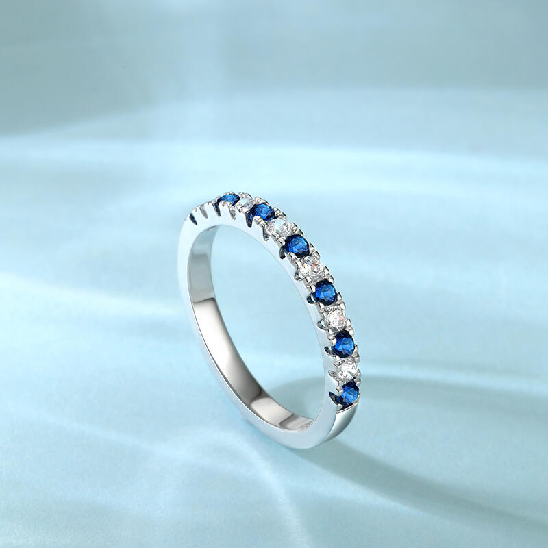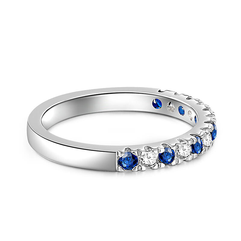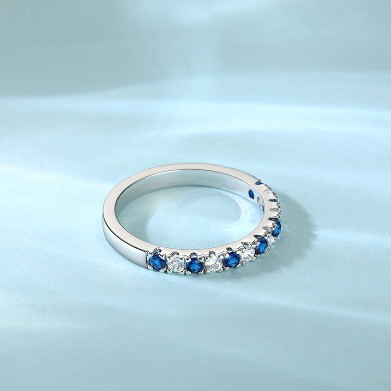 The Simple Women's wedding Band Round Cut Sterling Silver is a graceful reminder of love's purest essence. It slender design and half-ring of white and blue stones evoke the night sky and serene sea, representing the brightness, clarity, and depth of true love. This wedding band is a wearable promise, a daily reminder of the power of love to transform and uplift your life.