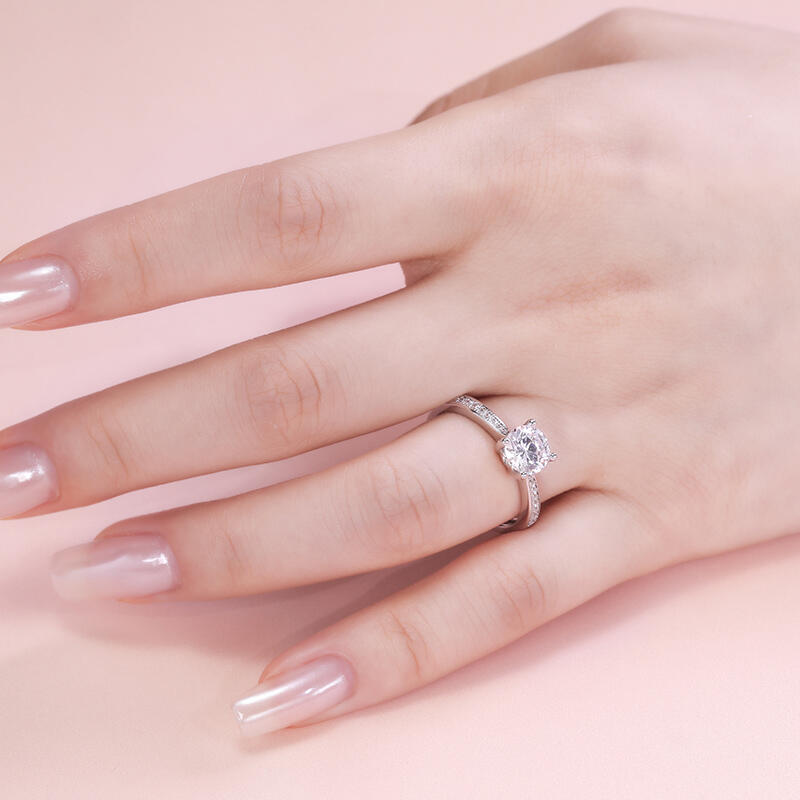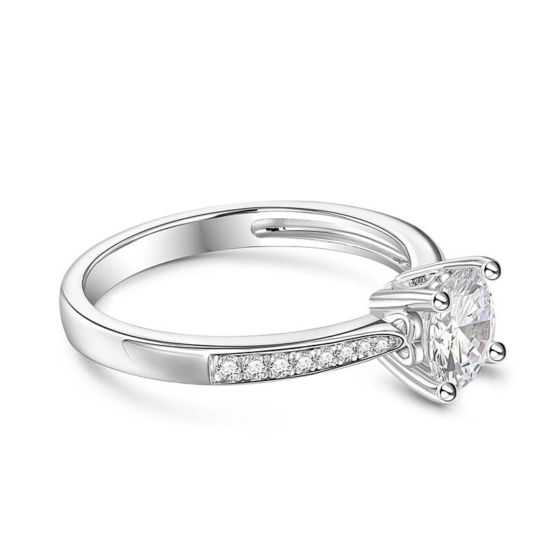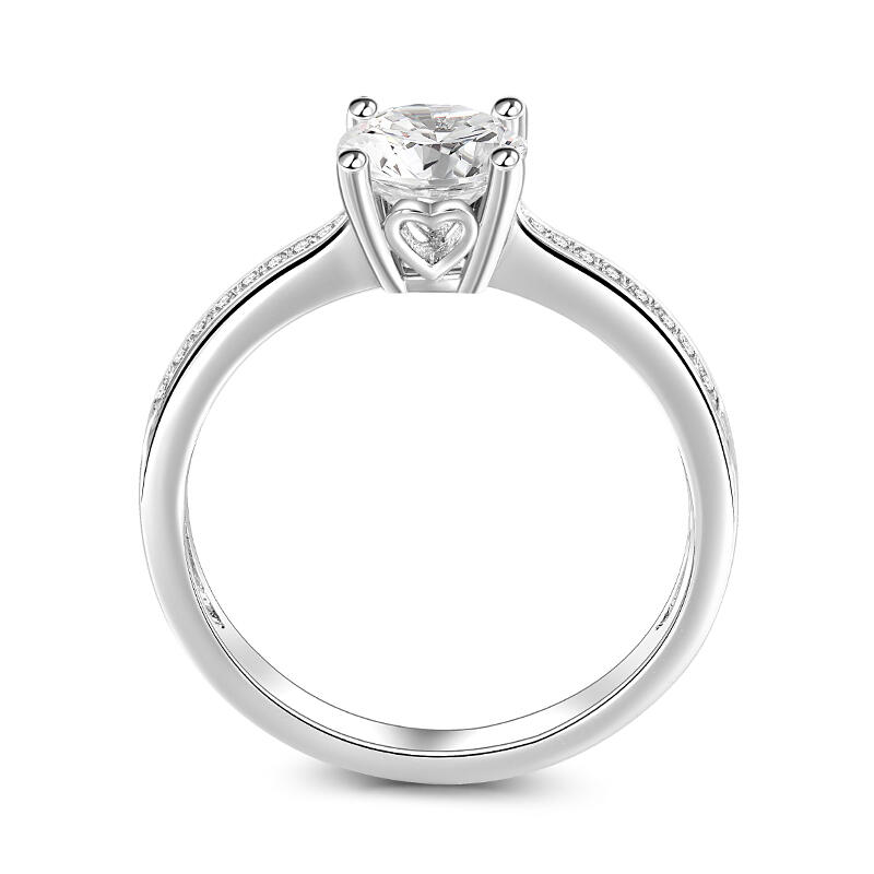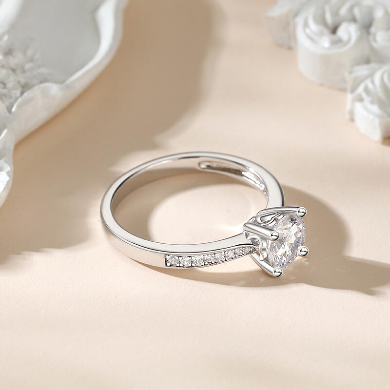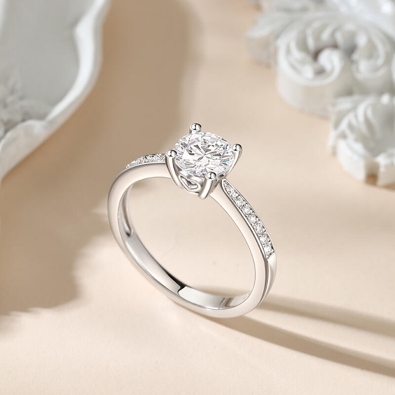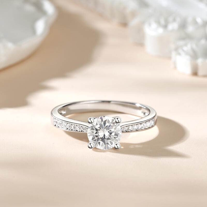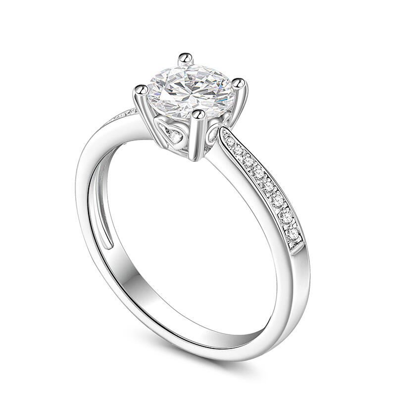 Promise to love her for a lifetime when you present her with this elegant solitaire ring. Simple and stunning, this engagement ring showcases a sparkling round stone at the center while additional stones are set into shank to add more sparkle to the design. The stones in this engagement ring shine brightly enough to be deserving as a symbol of your love.