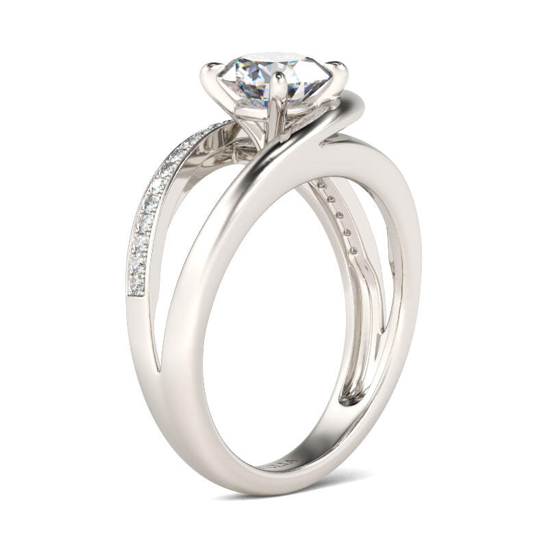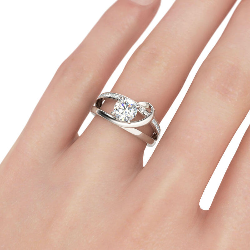 If you are looking for a ring in contemporary style , this ring will be a good choice. Crafted in sterling silver, set with glistening white round stones, this contemporary style engagement ring will sparkles brilliantly on your finger with a really unique look. The perfect round center stone and asymmetric split shank will be eye catchers anyway! Treat yourself as a nice holiday gift with this unique ring.