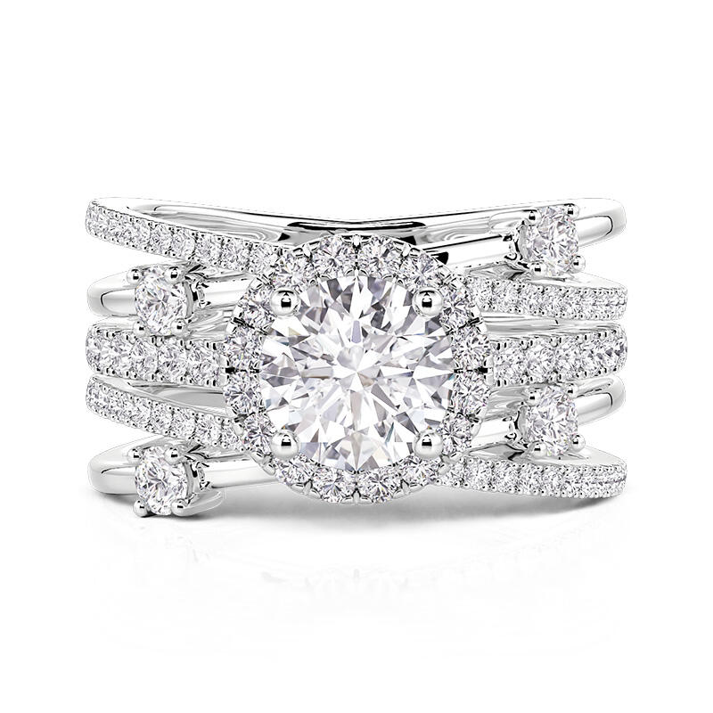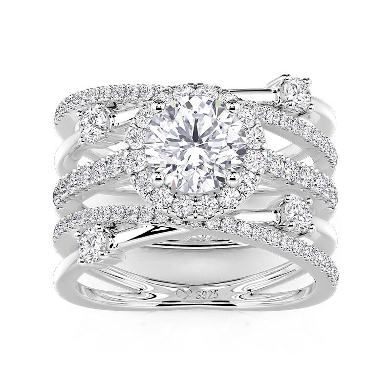 Jeulia Symmetrical Twisted Enhancer Halo Round Cut Bridal Set