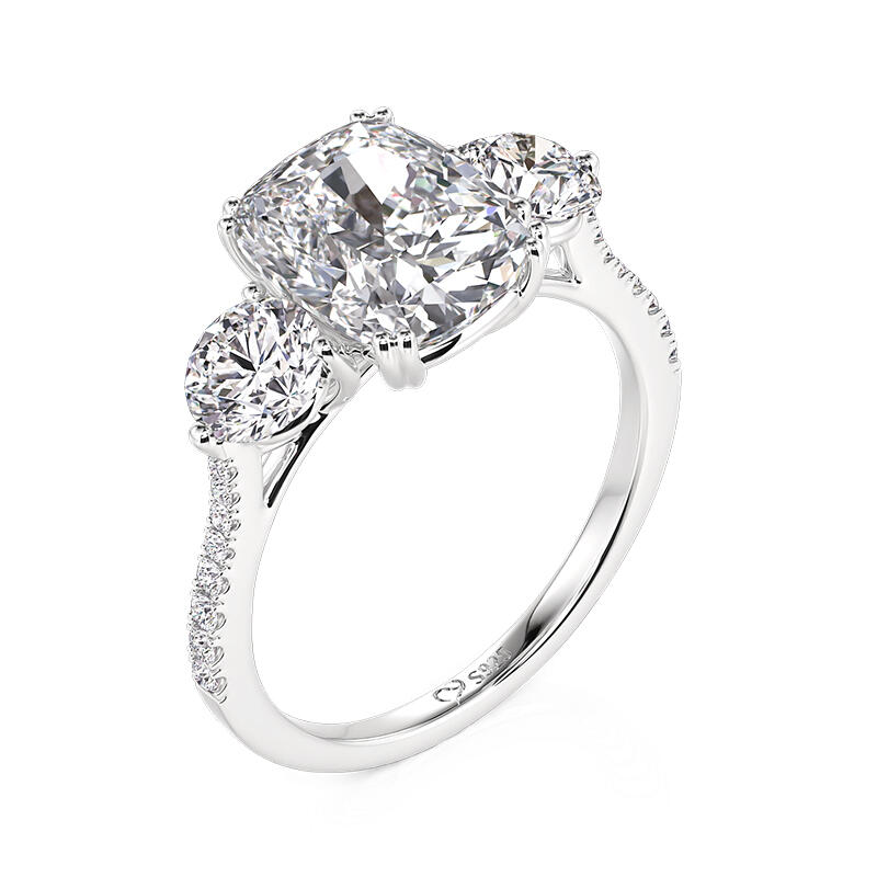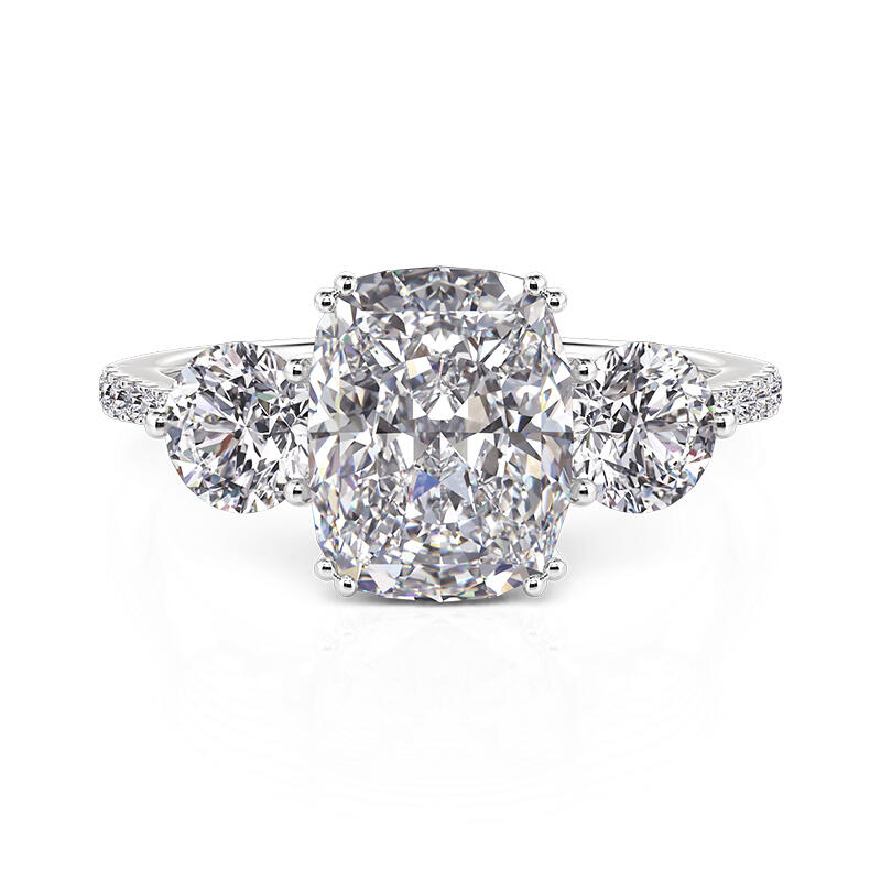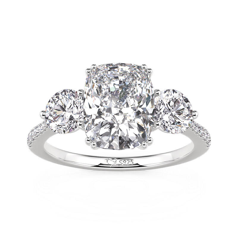 Jeulia Three Stone Engagement Ring with Pave Accents