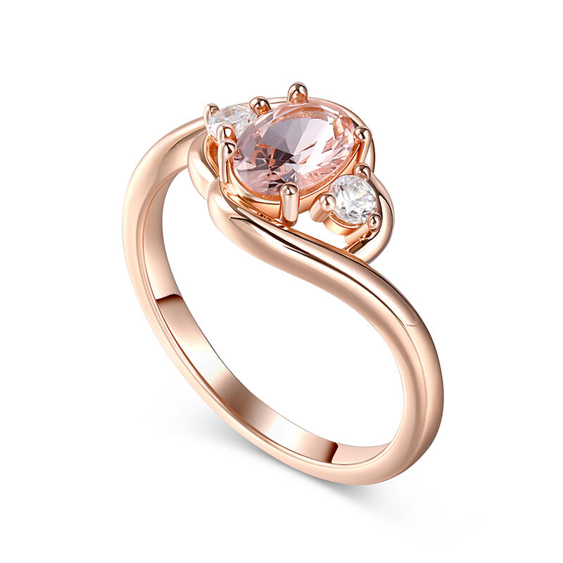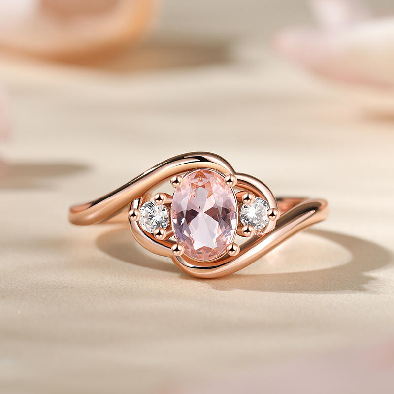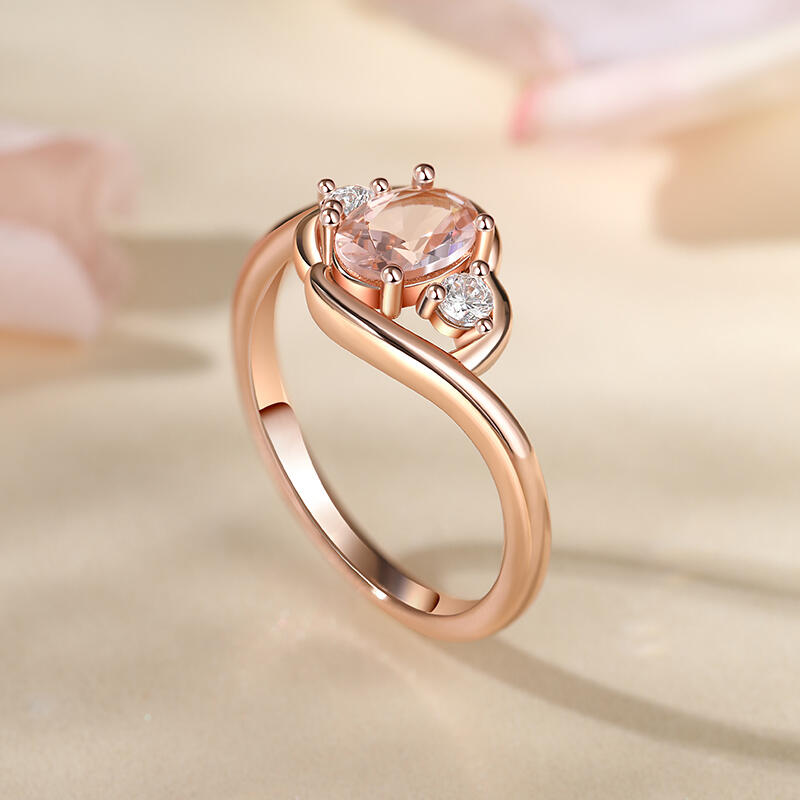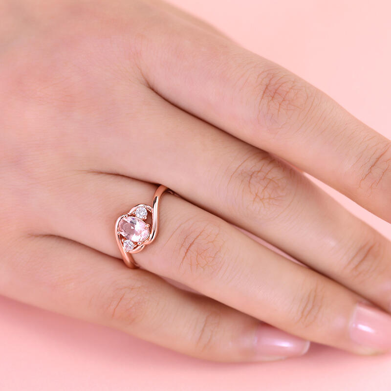Embrace the beauty and symbolism of the morganite ring, and let it be a testament to your everlasting love story. At its heart lies an elegant oval-cut morganite, radiating grace and charm. Adorning either side are two brilliant white stones, enhancing the ring's allure and creating a harmonious symphony of beauty. With its timeless design and exquisite craftsmanship, the morganite ring is a true embodiment of love's journey. It serves as a reminder to cherish the past, embrace the present, and embrace the future, as the three stones harmoniously unite to create an eternal bond.