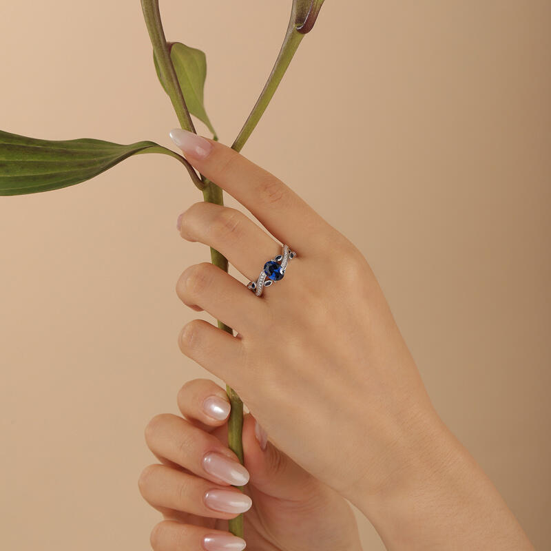 Jeulia Twist Leaves Blue Sapphire Engagement Ring Sterling Silver