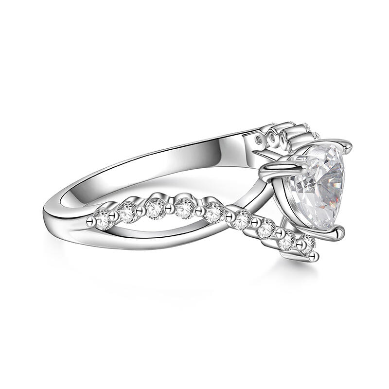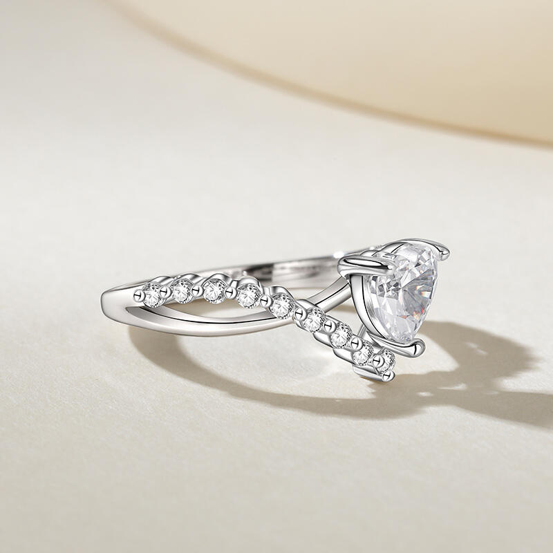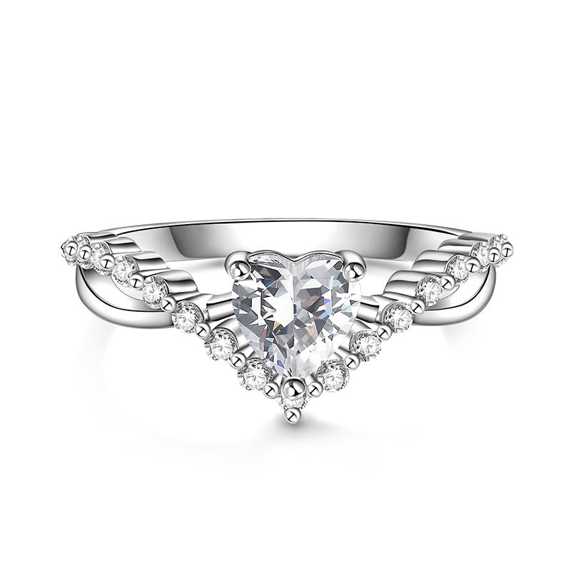 Jeulia Twist Shank Heart Cut Sterling Silver Engagement Ring