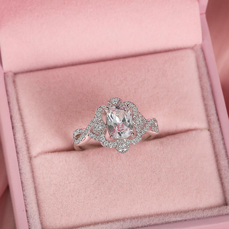 The Jeulia Twisted Elongated Cushion Engagement Ring features twinned vines of white and rose gold spiraling toward a central gem, their symmetry so precise that each curve mirrors its counterpart like a Rorschach inkblot. The pattern requires no stones—its brilliance lives in polished furrows catching light at 72° angles, casting lace-like shadows that dance with every gesture. For mathematicians of romance: love is geometry solved in molten gold.