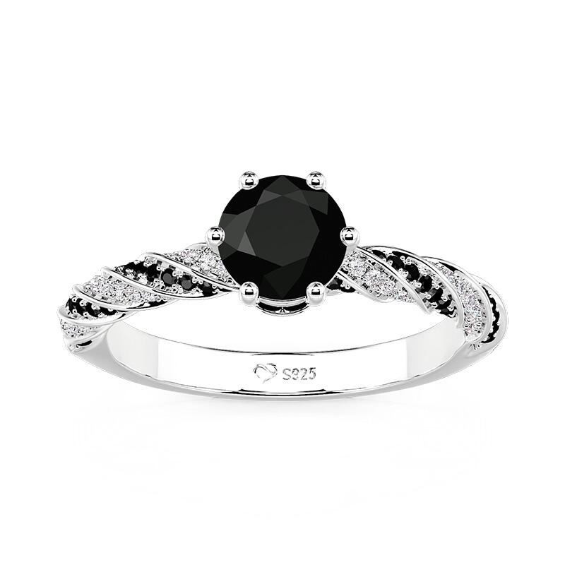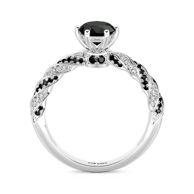 Embrace bold elegance with the Jeulia twisted black round cut eternity engagement ring. At its heart, a striking round - cut black stone commands attention, radiating mysterious allure. The band features a twisted design, adorned with pave - set stones in contrasting black and white hues, adding depth and sparkle. Crafted from sterling silver, this twisted black ring blends edgy style with refined detailing, making it a standout choice for those seeking a unique symbol of love.