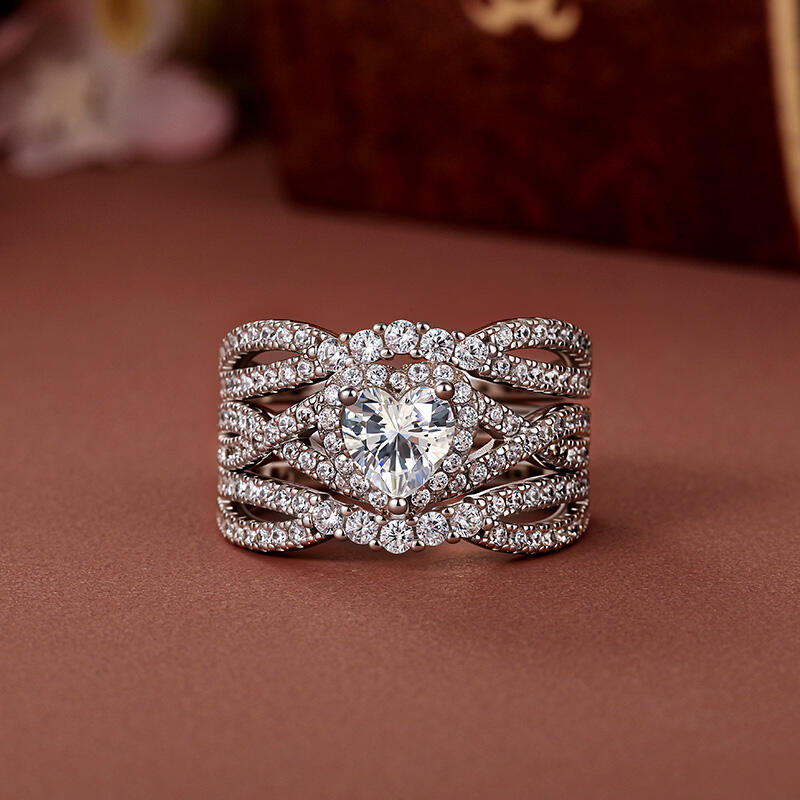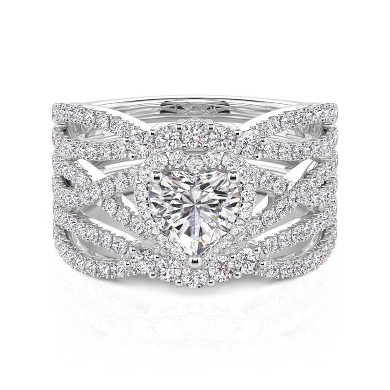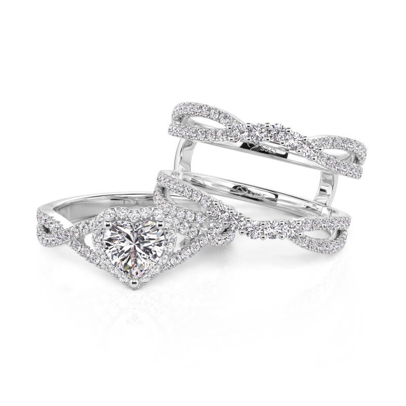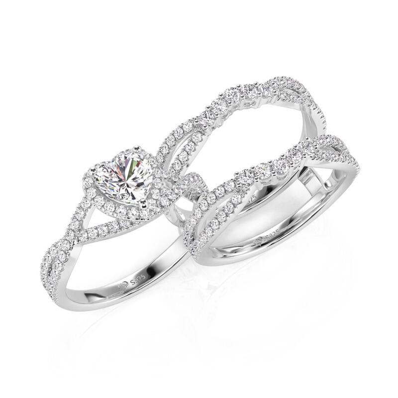 Jeulia Twisted Heart Halo Engagement Ring Set 2PCS