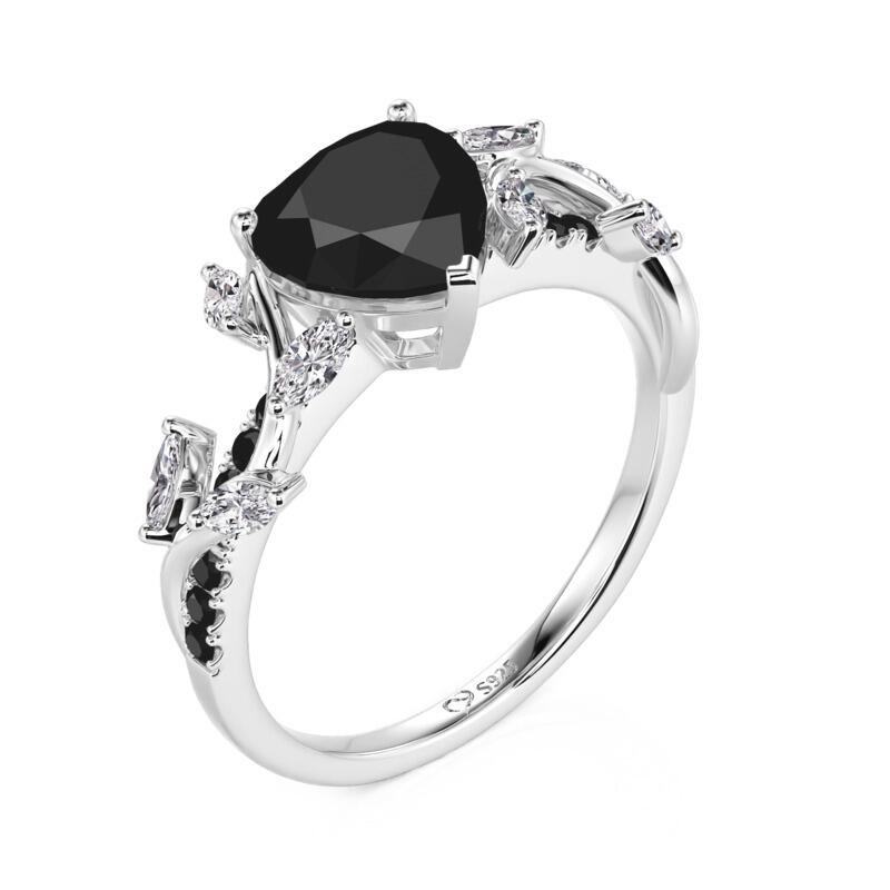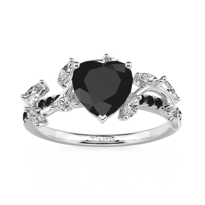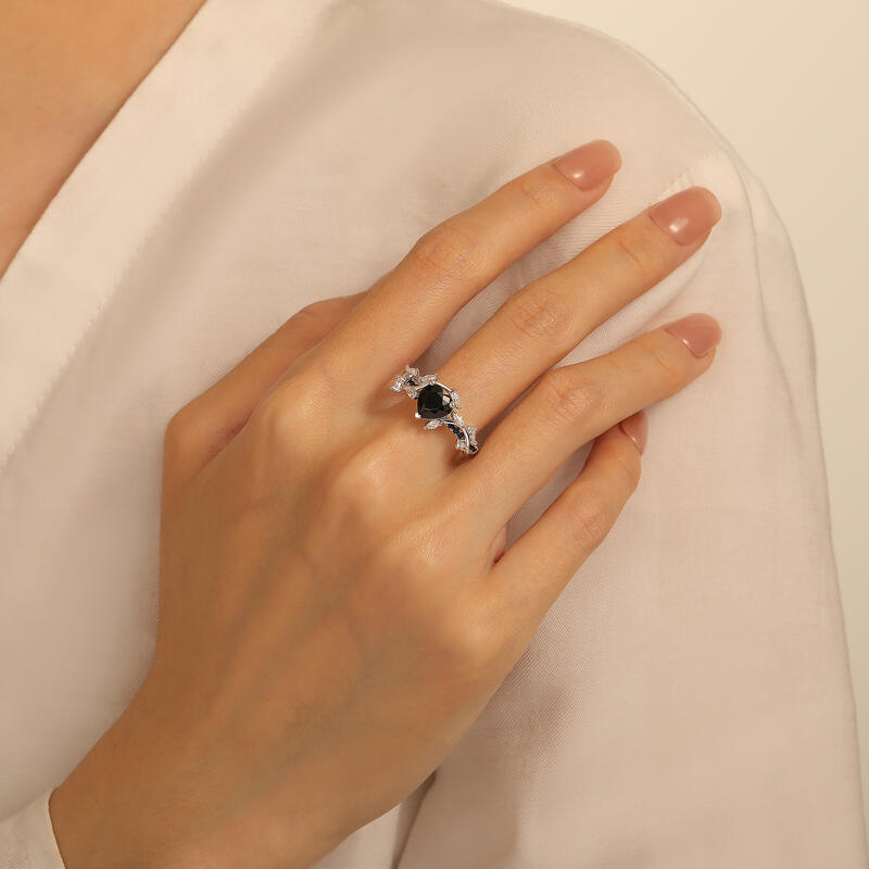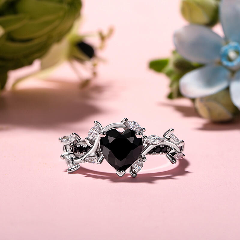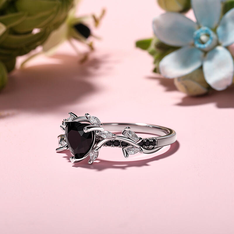 Jeulia Twisted Thorns Leaf Black Heart Promise Ring