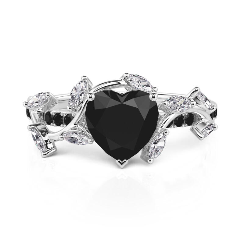 Embrace bold romance with the Jeulia twisted thorns leaf black heart promise ring. A striking black heart - shaped stone anchors the design, framed by twisted black & white stones that coil along the band—seamlessly blending “black heart” and “thorns leaf” motifs. The thorns leaf details, woven into the twisted band, add edgy elegance—symbolizing love forged through trials. Whether sealing a promise or showcasing your style, this natured inspired ring merges daring design with timeless meaning. Ideal for daily wear or special commitments, this twisted ring is a symbol of courage and devotion. Claim your story.