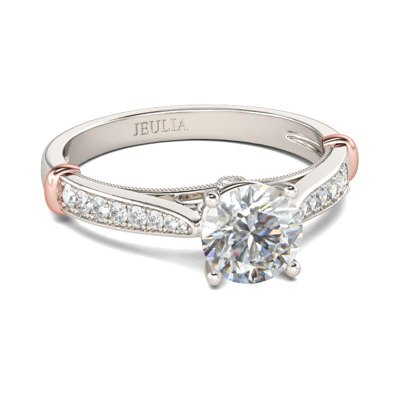 Jeulia Two Tone Classic Round Cut Sterling Silver Ring