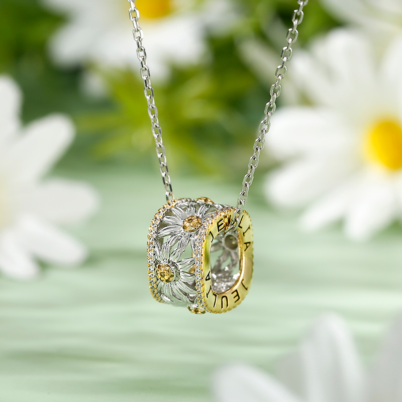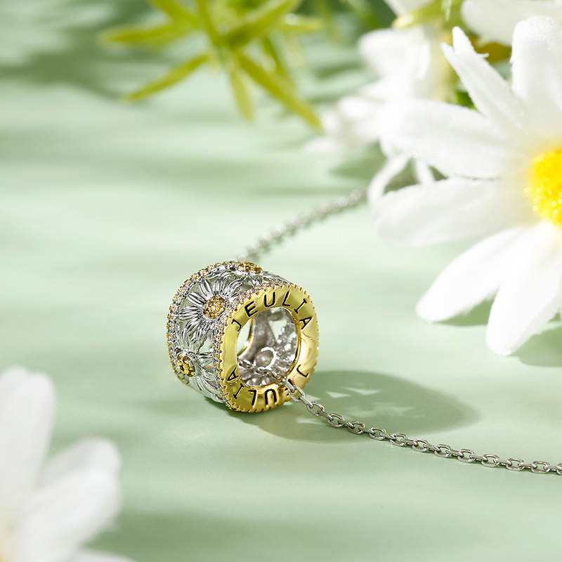 Jeulia Two Tone Daisy Floral Sterling Silver Necklace