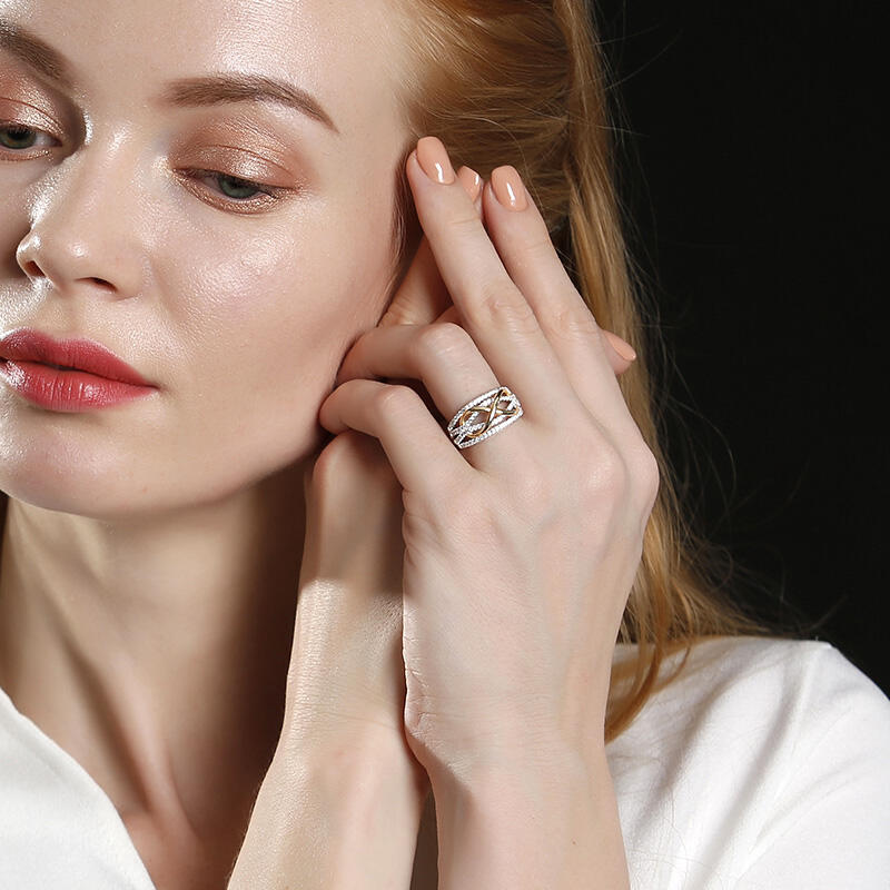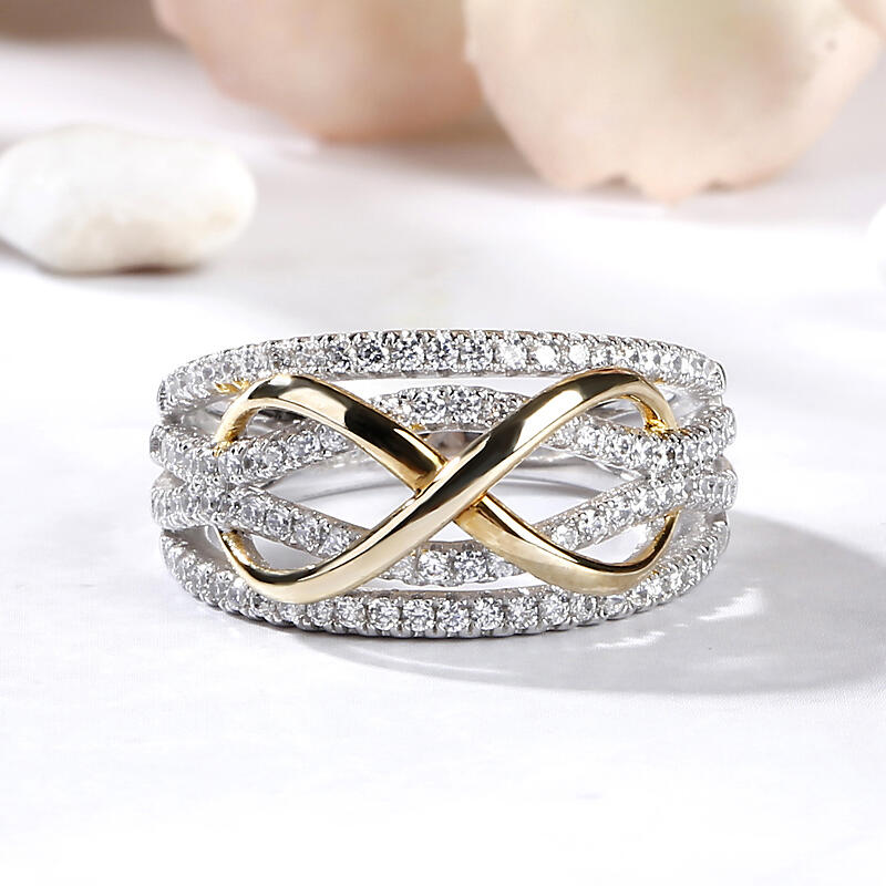 Jeulia Two Tone Infinity Sterling Silver Women's Band