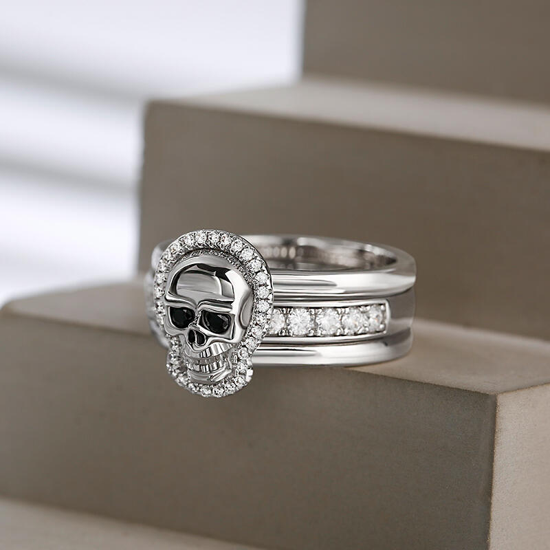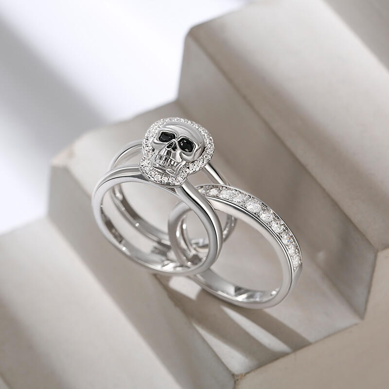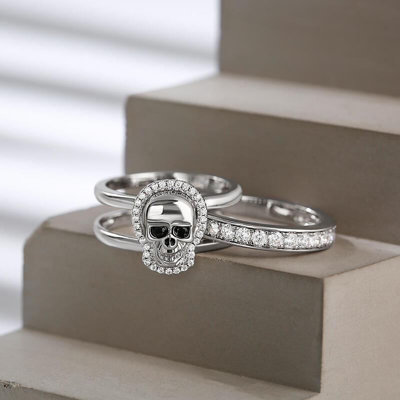 Jeulia "Undying Soul" Skull Design Sterling Silver Interchangeable Ring Set
