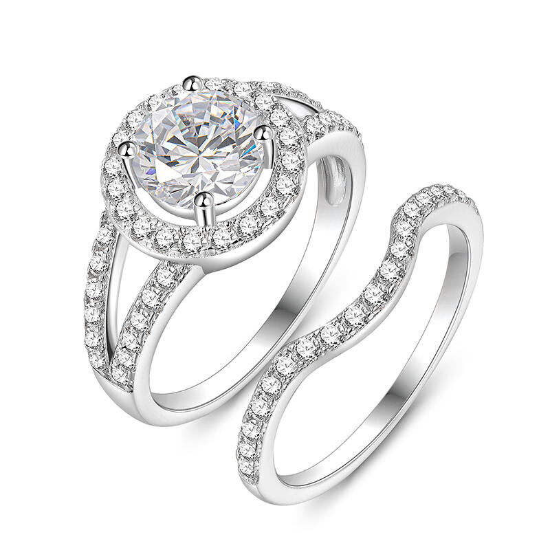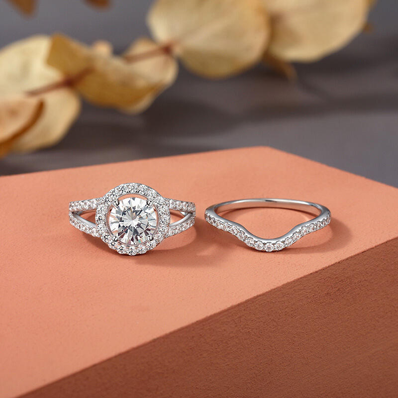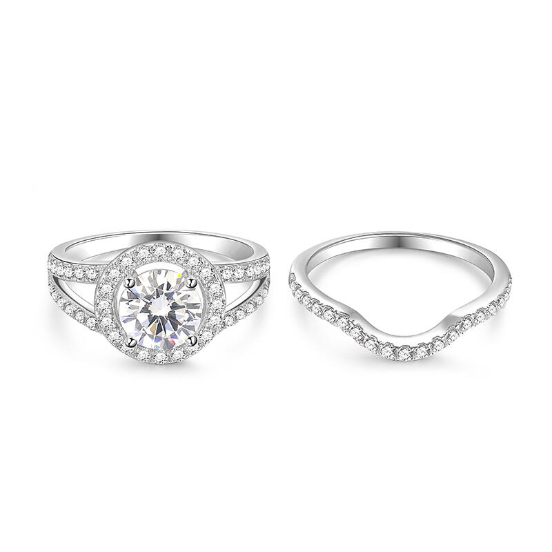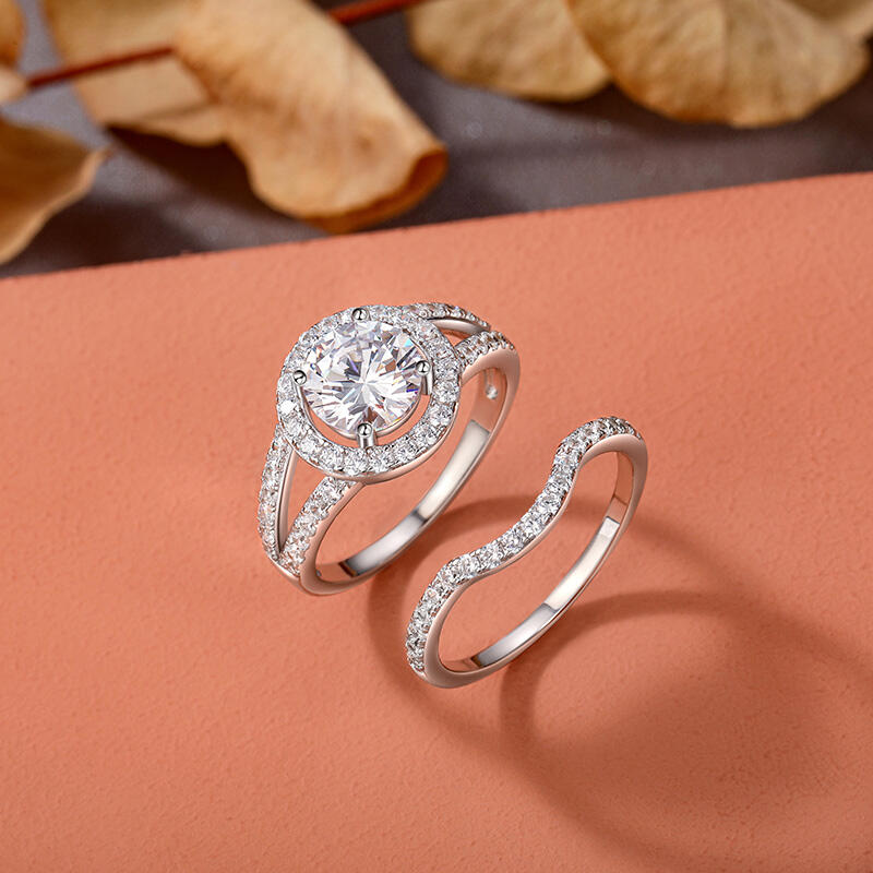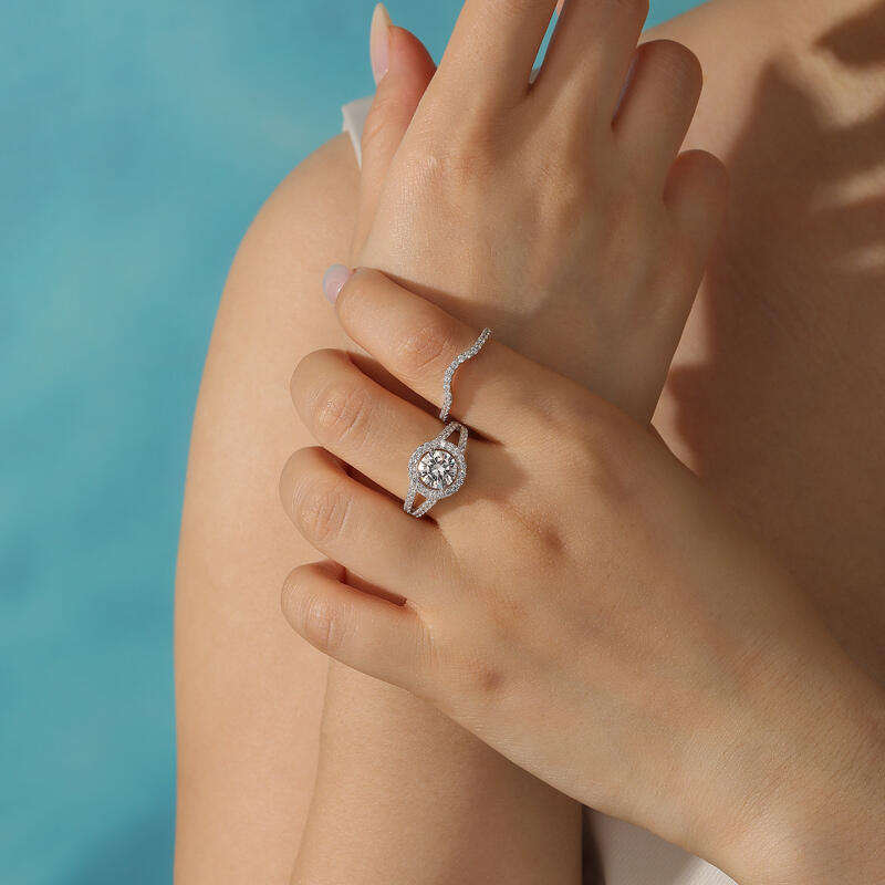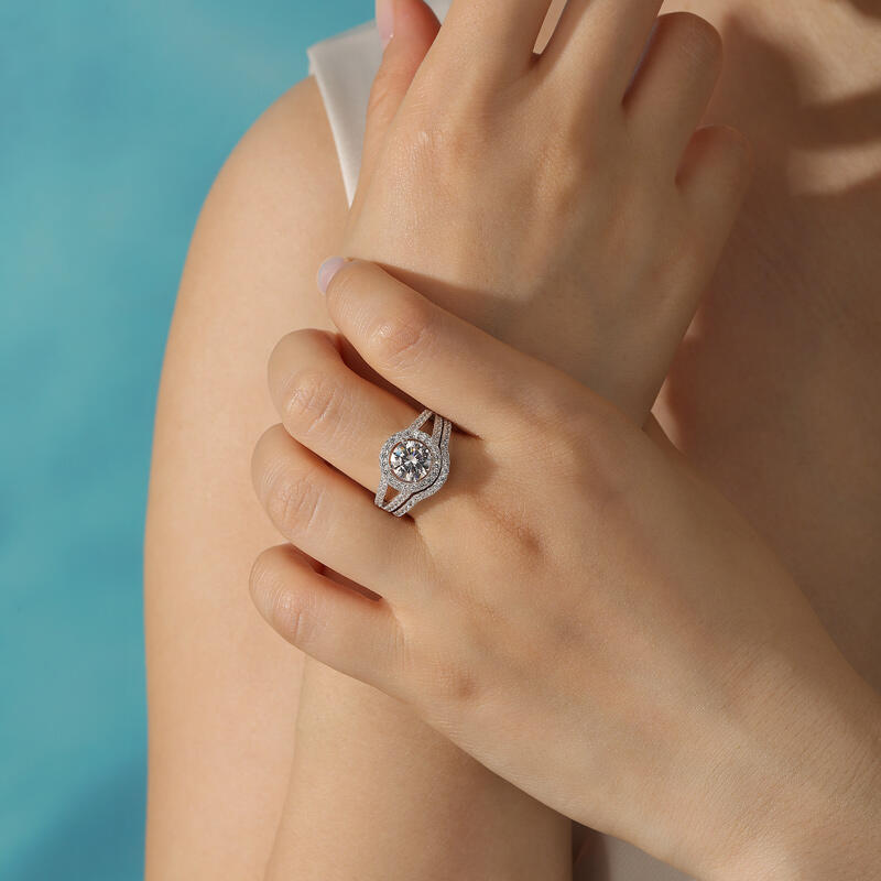 As bright as a star, the large round-cut stone set in the center of this vintage bridal ring radiates a captivating light that seems to unite love in a single moment. The delicate 925 silver shimmers with white luster and surrounds the sparkling small diamonds, creating a dreamy halo design that resembles a galactic setting of treasures. The secondary ring, on the other hand, is a simple design that aptly complements the magnificence of the main halo bridal ring. The vintage halo bridal ring set is elegant and smooth, a perfect blend of classic and modern temperament, heartwarming, signifying eternal commitment and deep love, suitable for gifting to your beloved on engagement or special occasions.