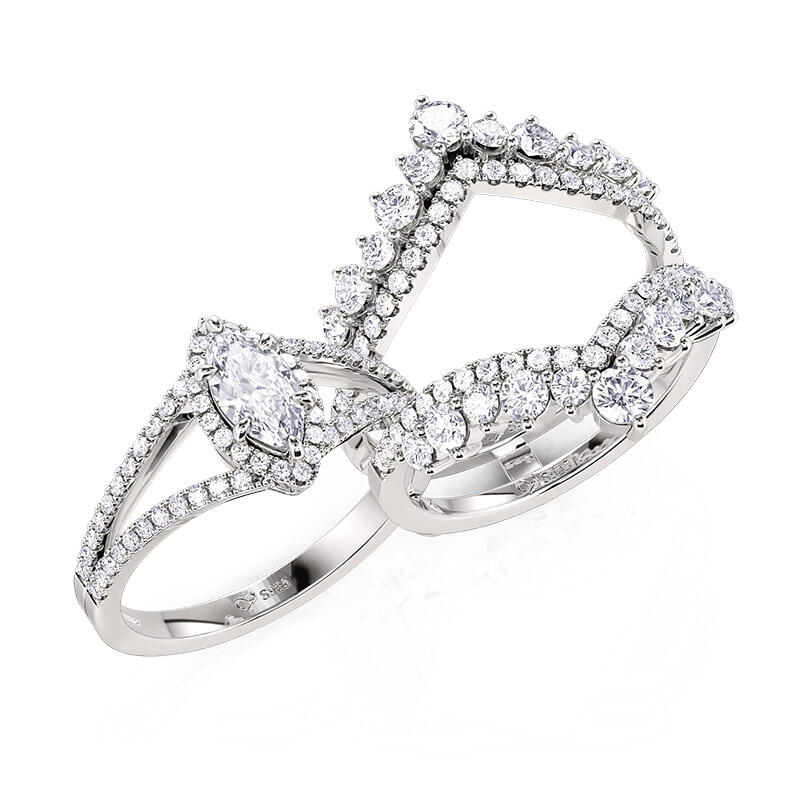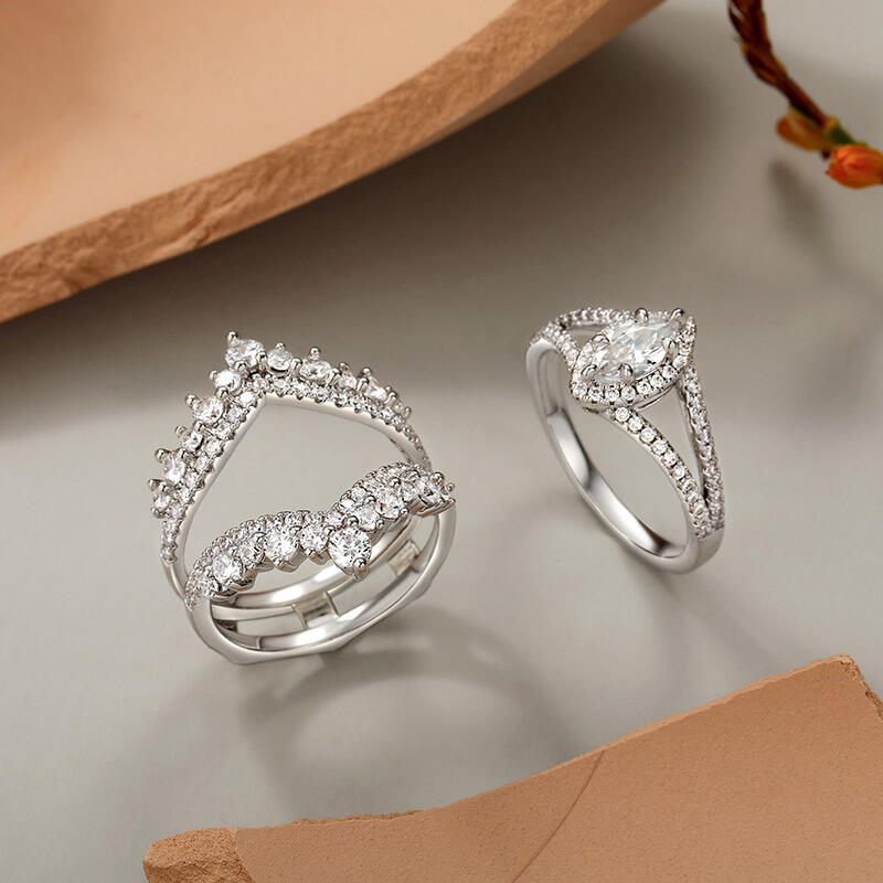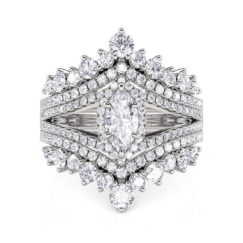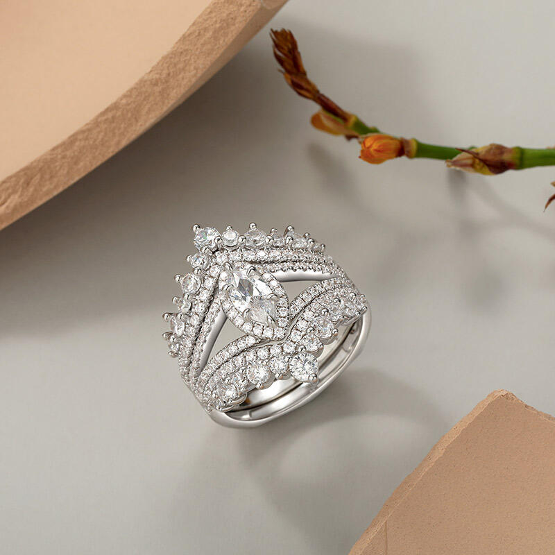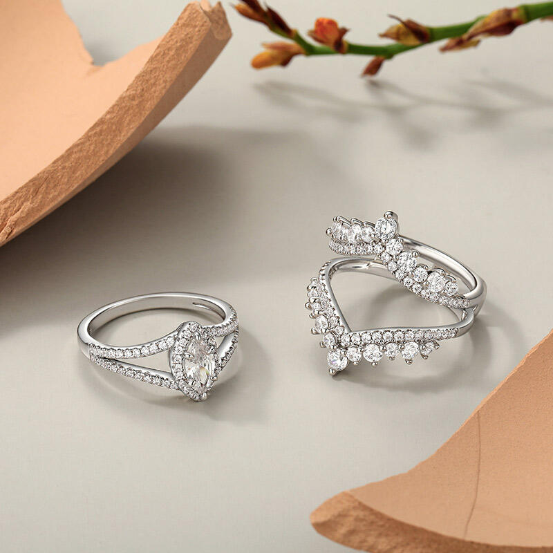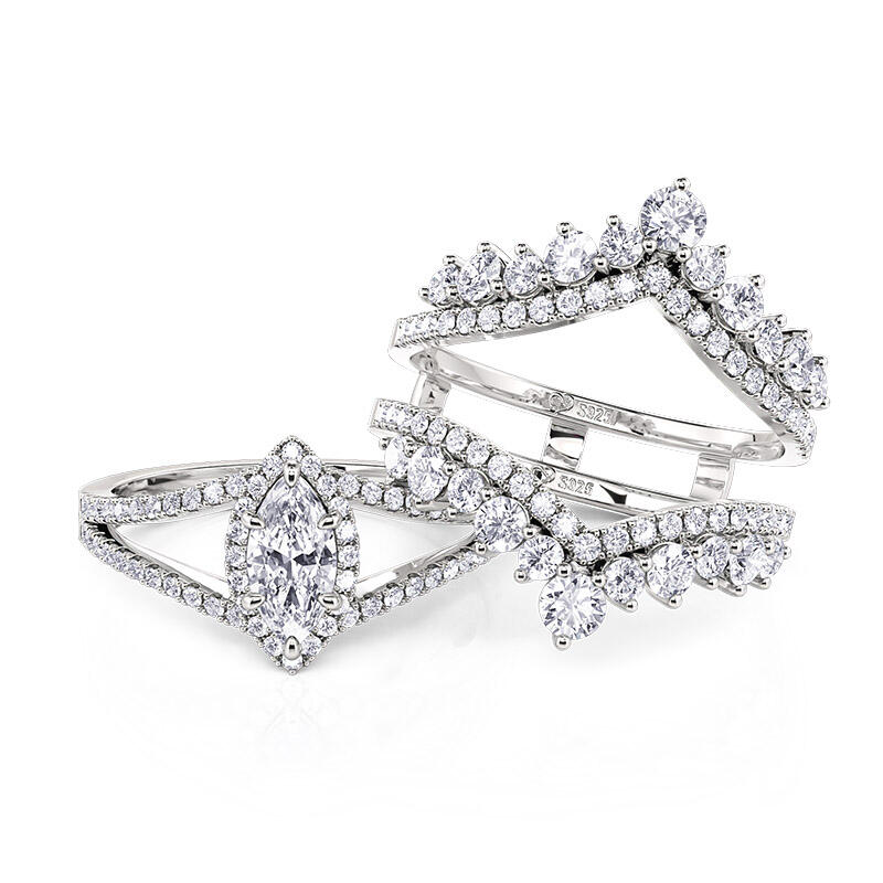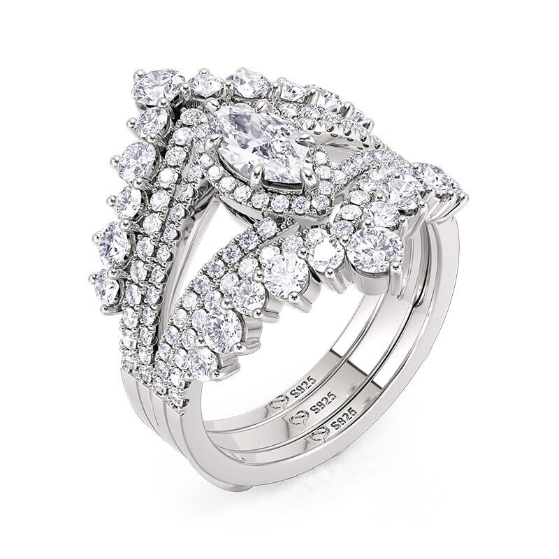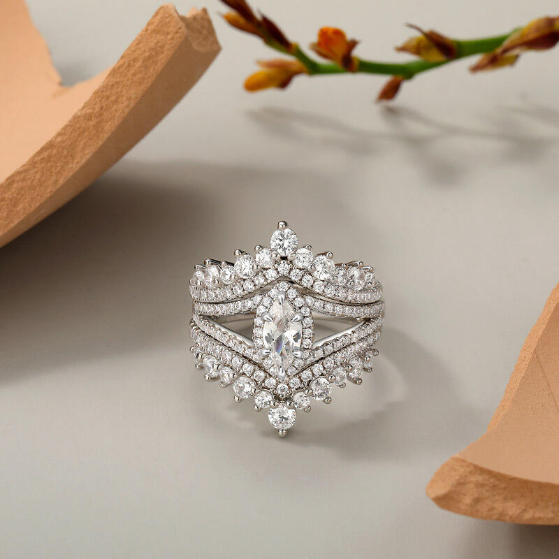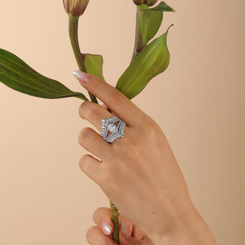 Love is a promise, and rings are a testament to eternity. This vintage sterling silver halo wedding ring set is a gorgeous and sparkling blend of Halo design and marquise cut stone. Each horse-eye stone seems to be inlaid with your love story, sparkling and moving. Let your love bloom brilliantly in this vintage eternal ring until forever.