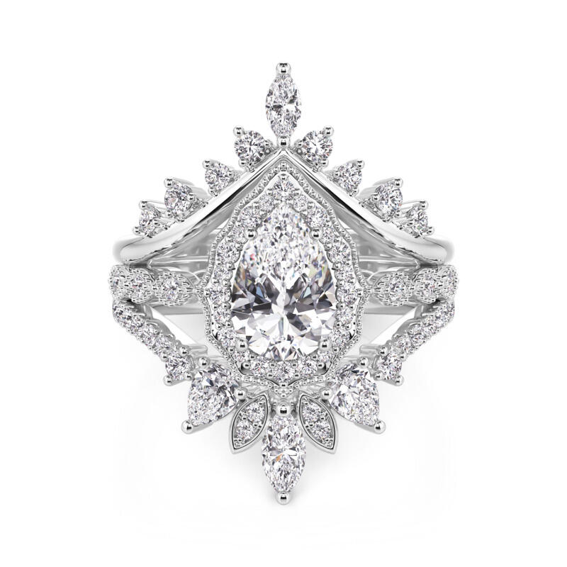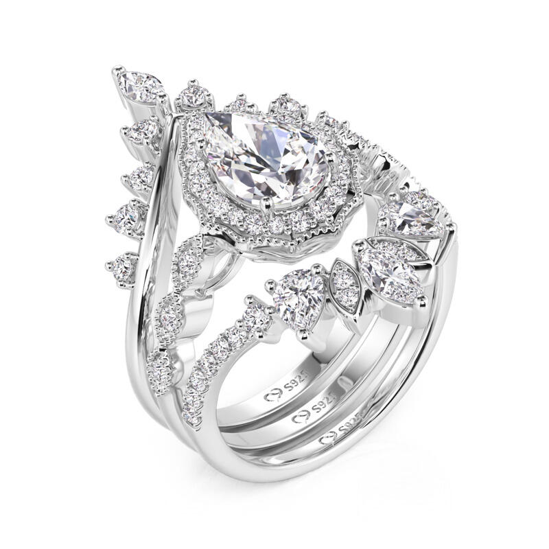 Jeulia Vintage Halo Pear Bridal Set with Enhancer Sterling Silver