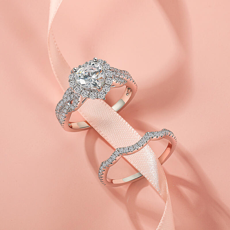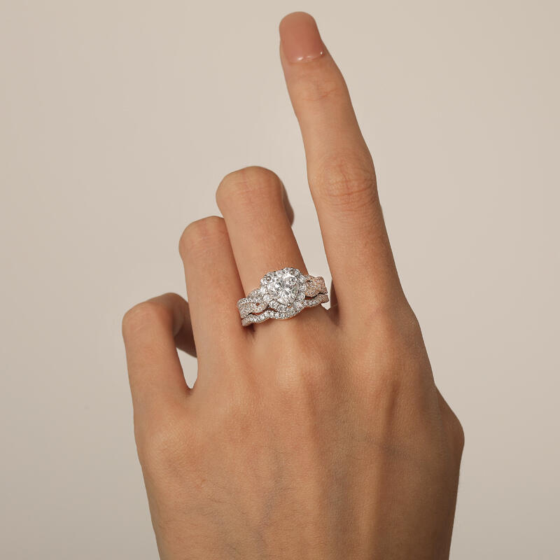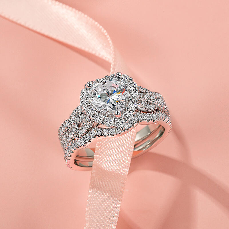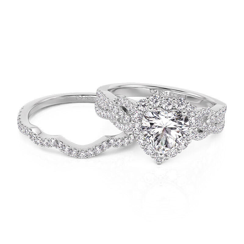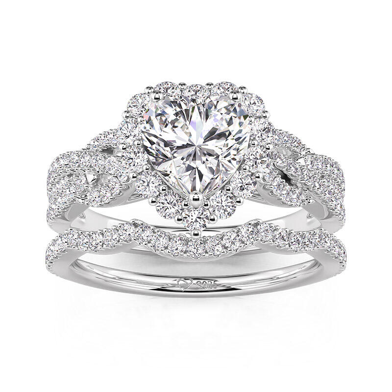 Jeulia Vintage Halo Twist Heart Cut Bridal Ring Set Sterling Silver