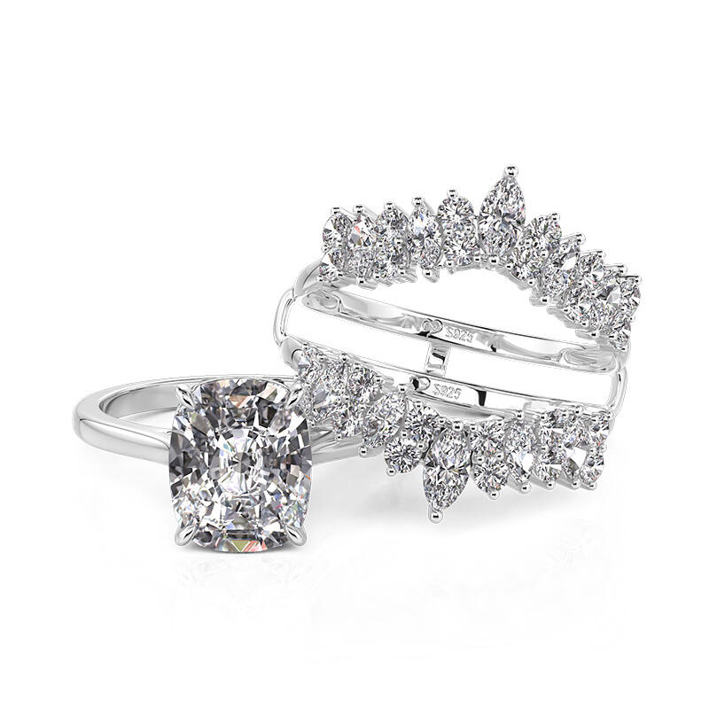 Jeulia Vintage Interchangeable Cushion Cut Bridal Ring Set Sterling Silver