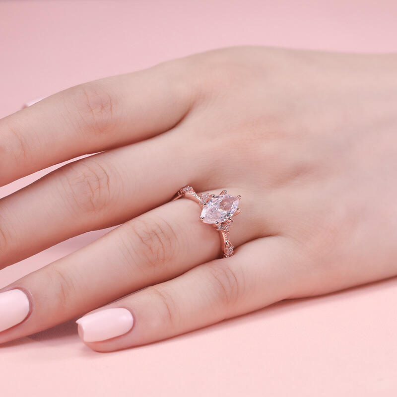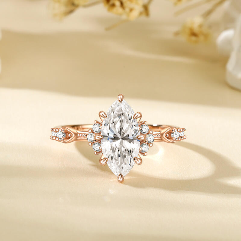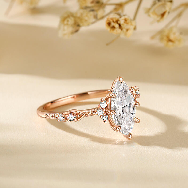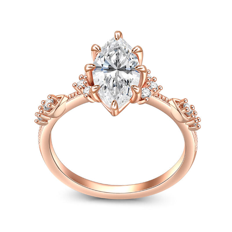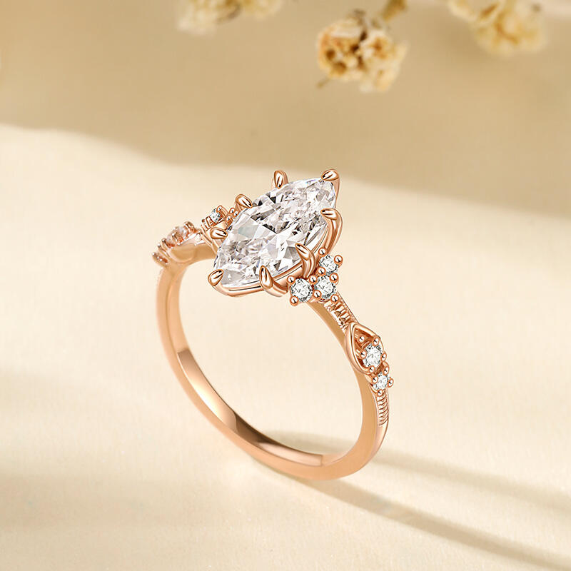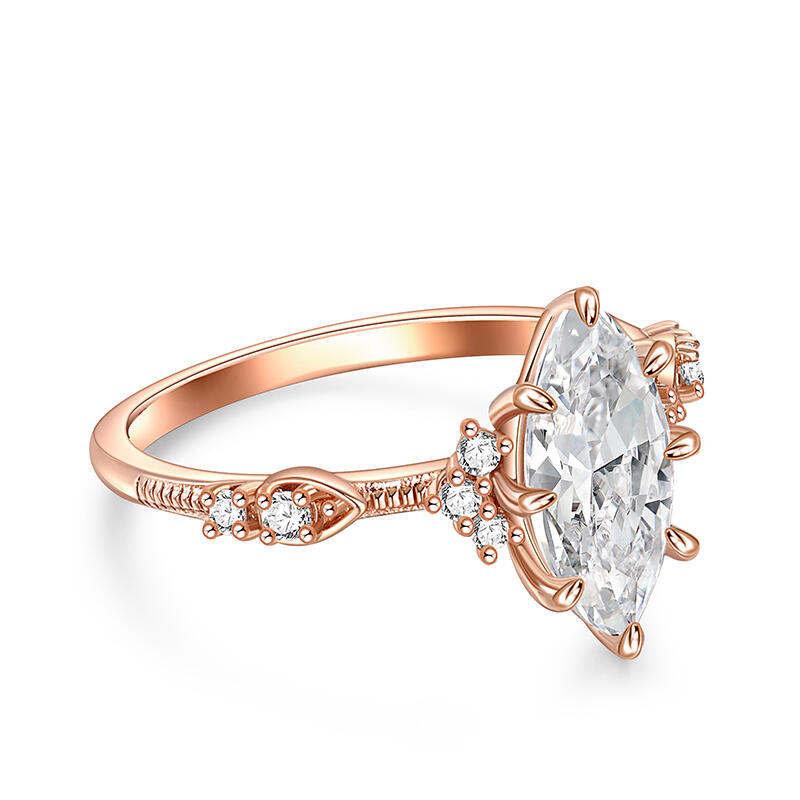 This sterling silver textured marquise engagement ring is highlighted by a large olive shaped marquise main stone with a slim band arm, showcasing an elegant and sophisticated design. The unique shape and sparkling luster of the main stone add to the opulence and luxury of the entire engagement ring. The ring's exquisite and delicate design highlights the noble and elegant temperament, allowing the wearer to exude confidence and charm. Whether it is for everyday wear or important occasions, this marquise engagement ring will add flair and become your unique fashion icon.