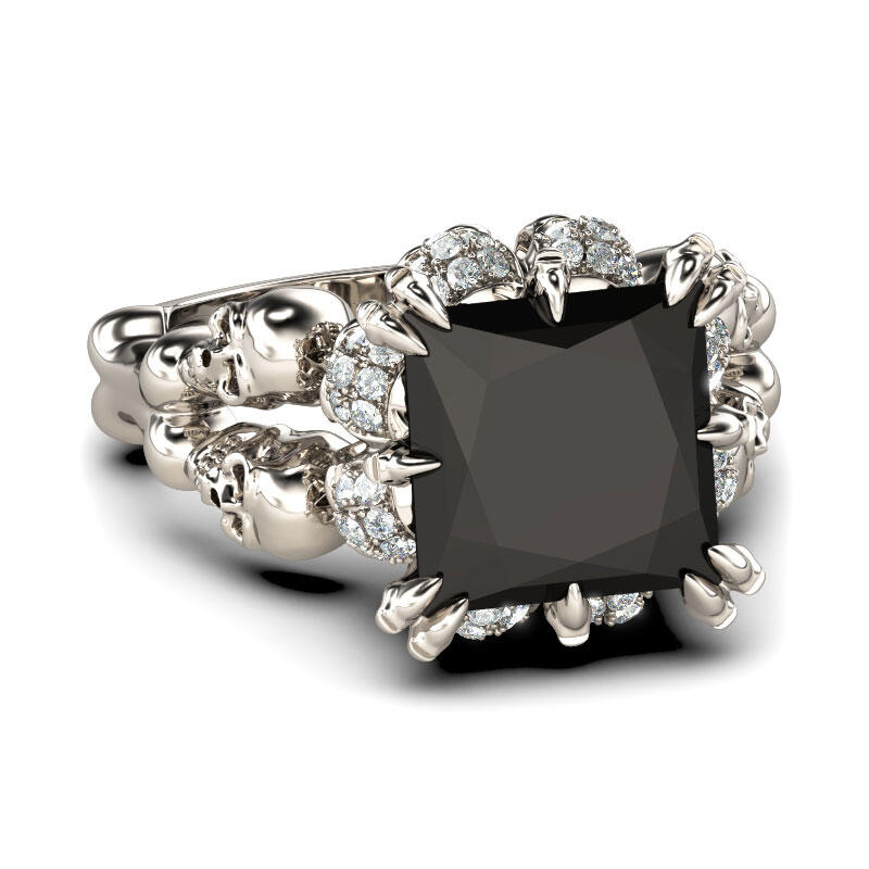 Jeulia Vintage Princess Cut Sterling Silver Skull Ring