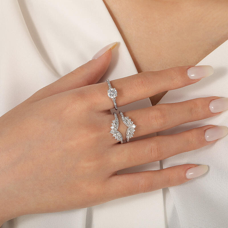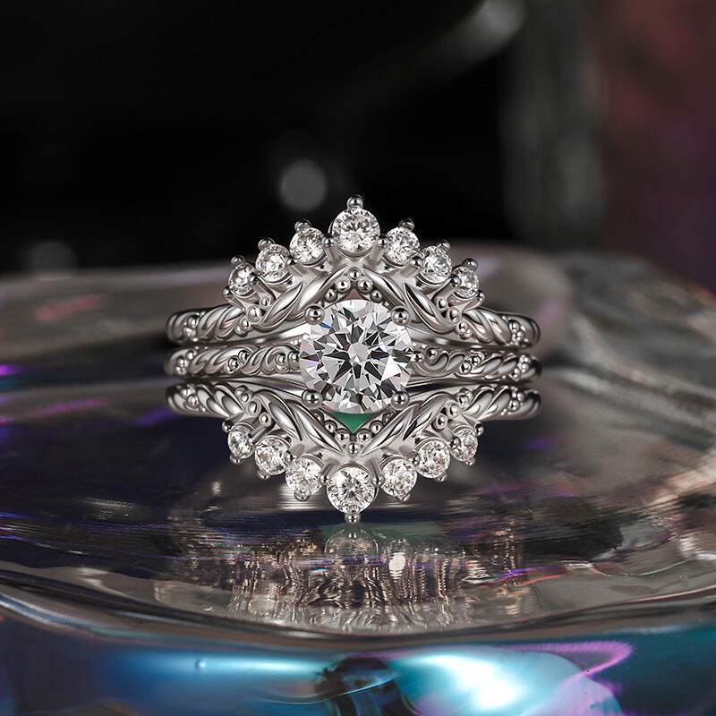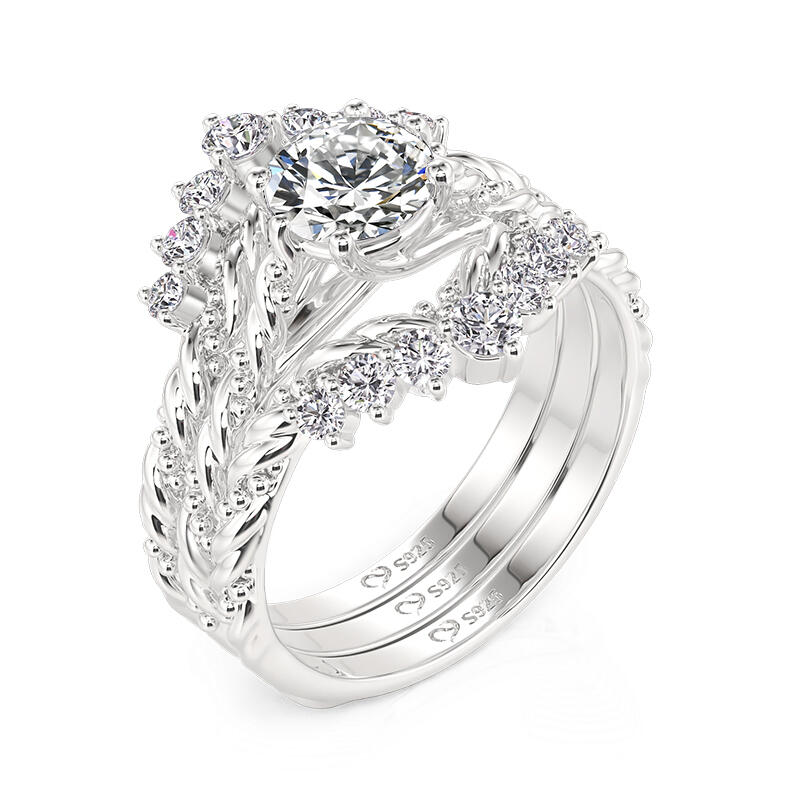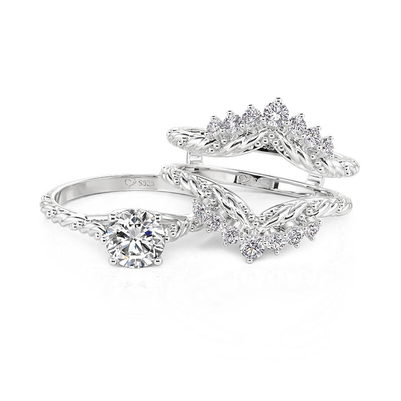 Jeulia Vintage Round Cut Twist Ring Set 2pcs