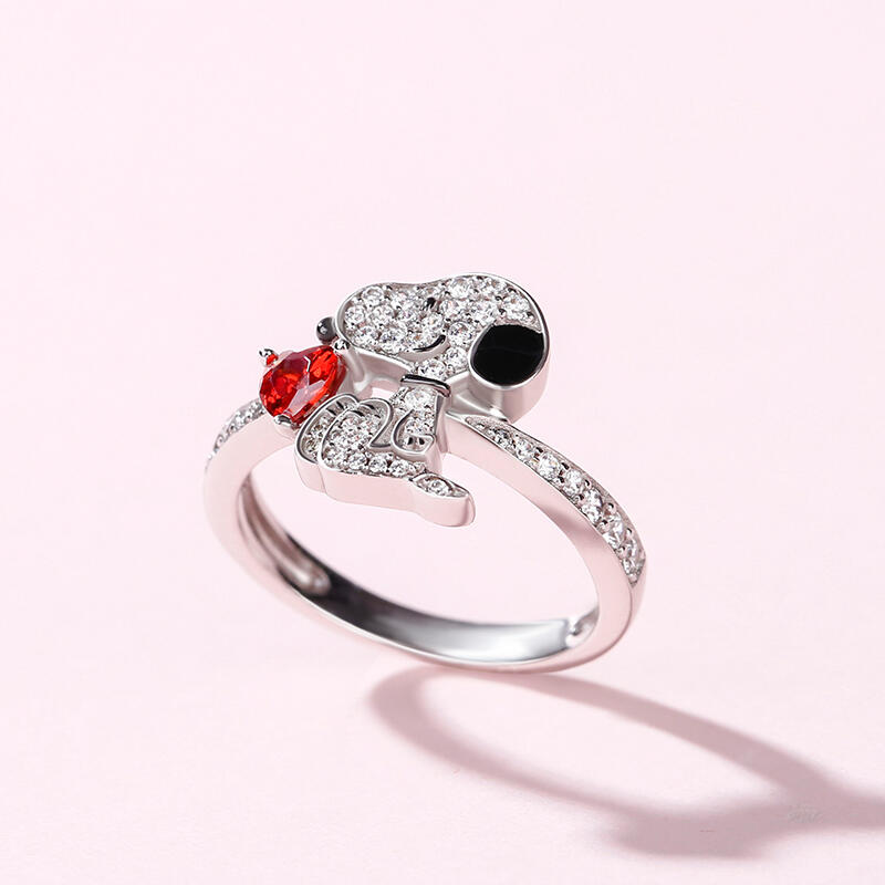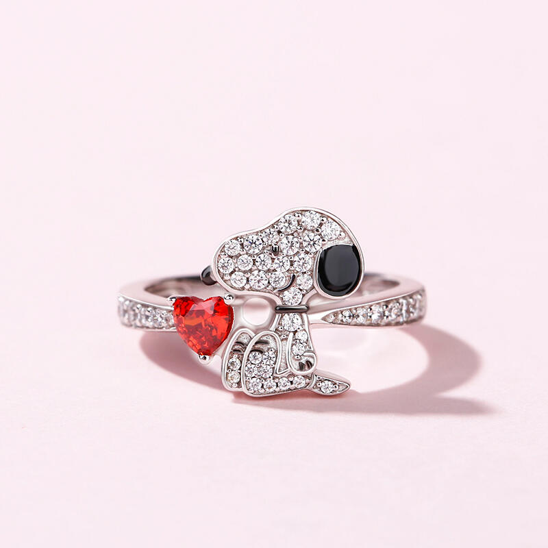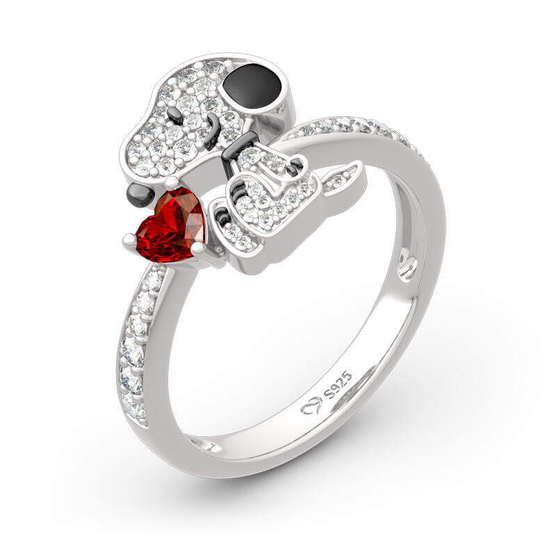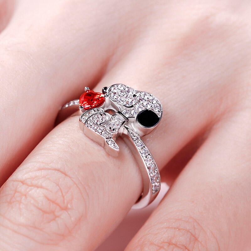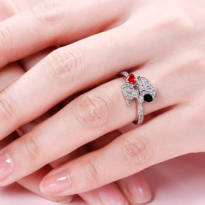 Buffed to a brilliant luster, this ring is a captivating statement of style. Crafted in sterling silver, it features a shimmering heart cut stone hugged by a cute puppy. This puppy dog is loyal, funny, imaginative and good-natured. He is also a genuinely happy dog. If you want him to be always by your side, put our puppy ring on your hand immediately.