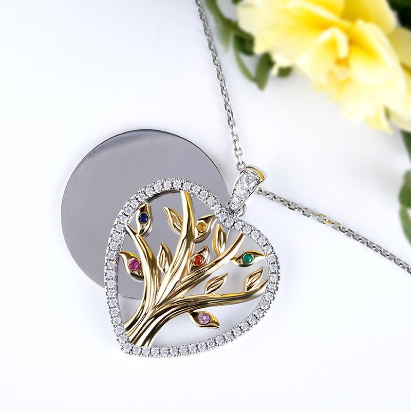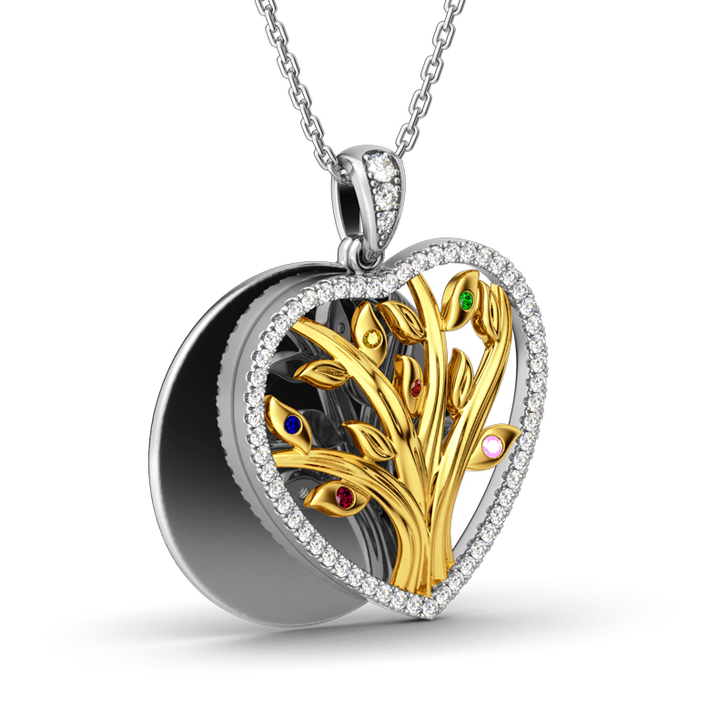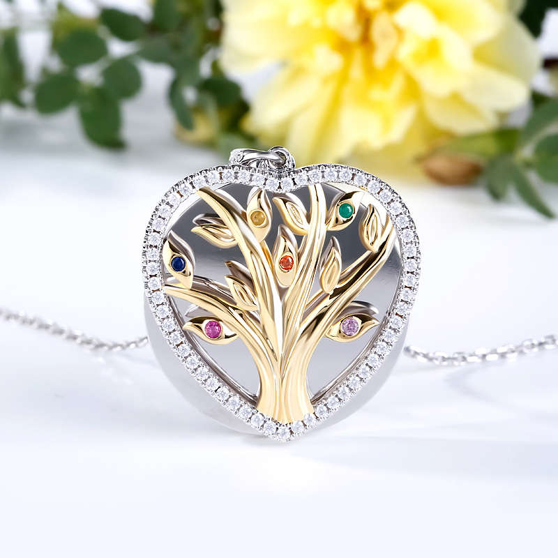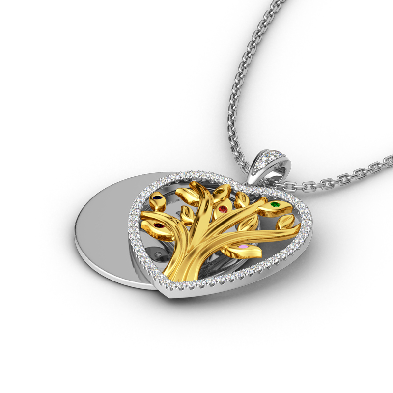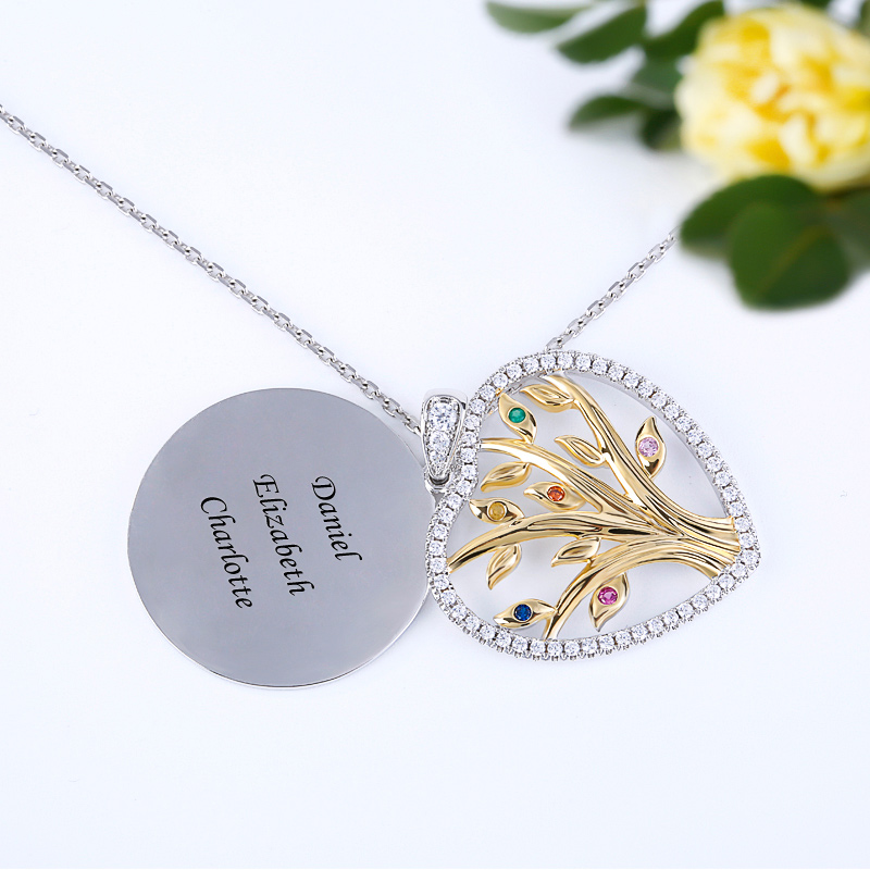 Celebrate your life with this tree of life pendant necklace. Tree of life is a meaningful motif in jewelry design, while every person imbues it with own special meaning. Crafted in two tone sterling silver, this layered pendant is consist of a cut-out heart-frame tree of life and a round polished disc. You can leave your special inscription on the disc to make it unqiue. It's an adorable gift for Mom, children,sister or yourself.