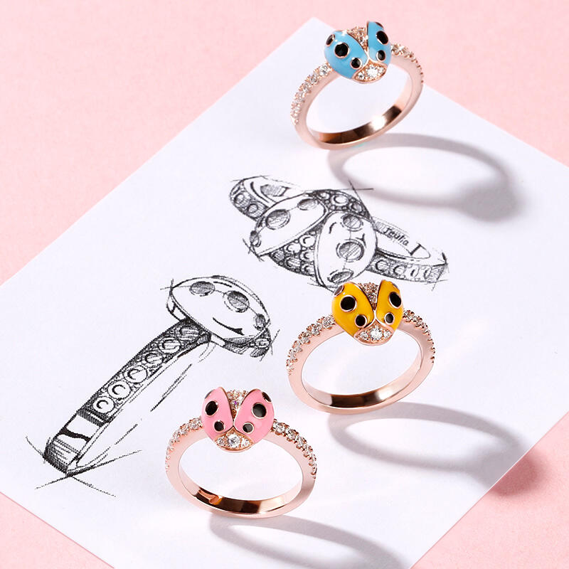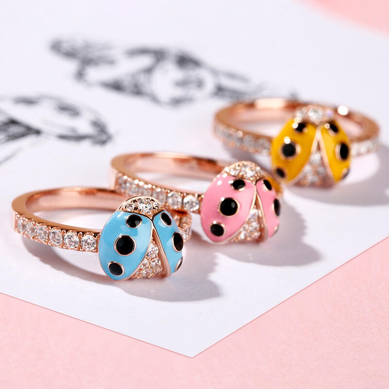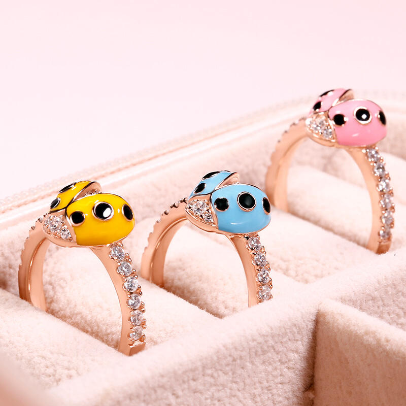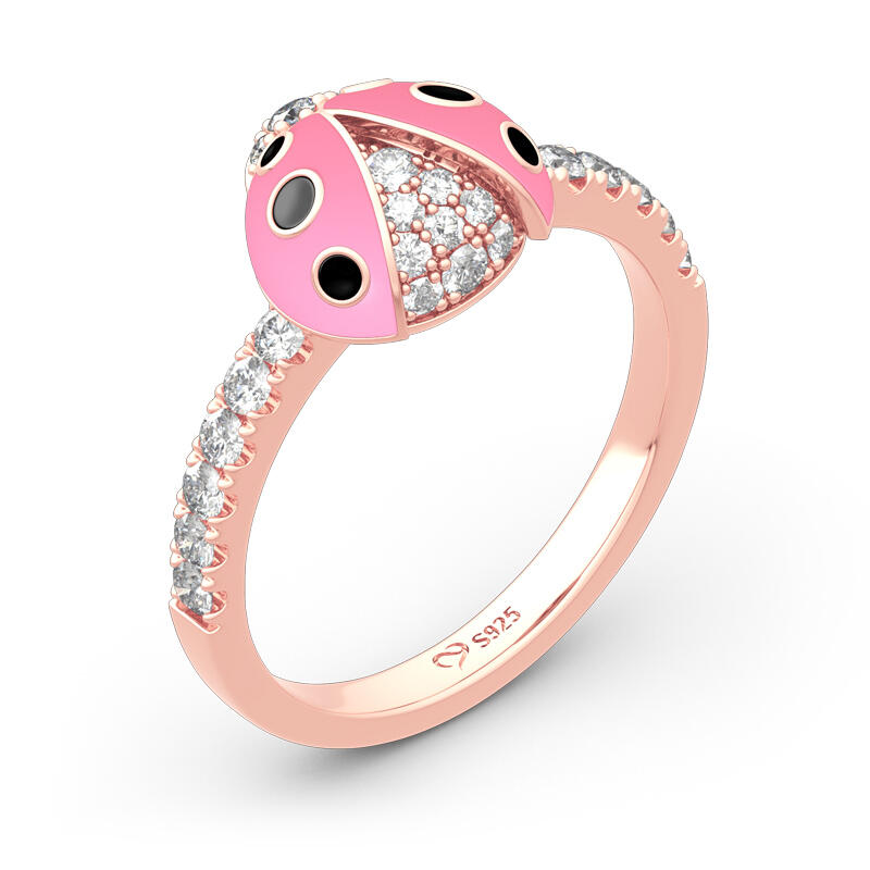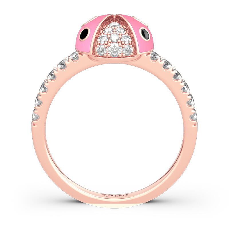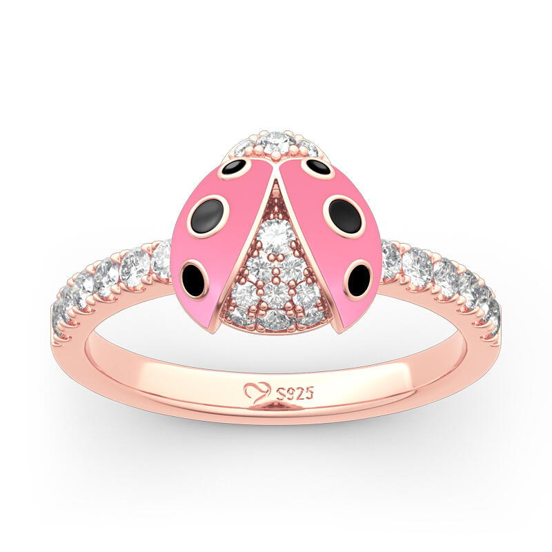 Jeulia Lucky Pink Ladybug Sterling Silver Ring