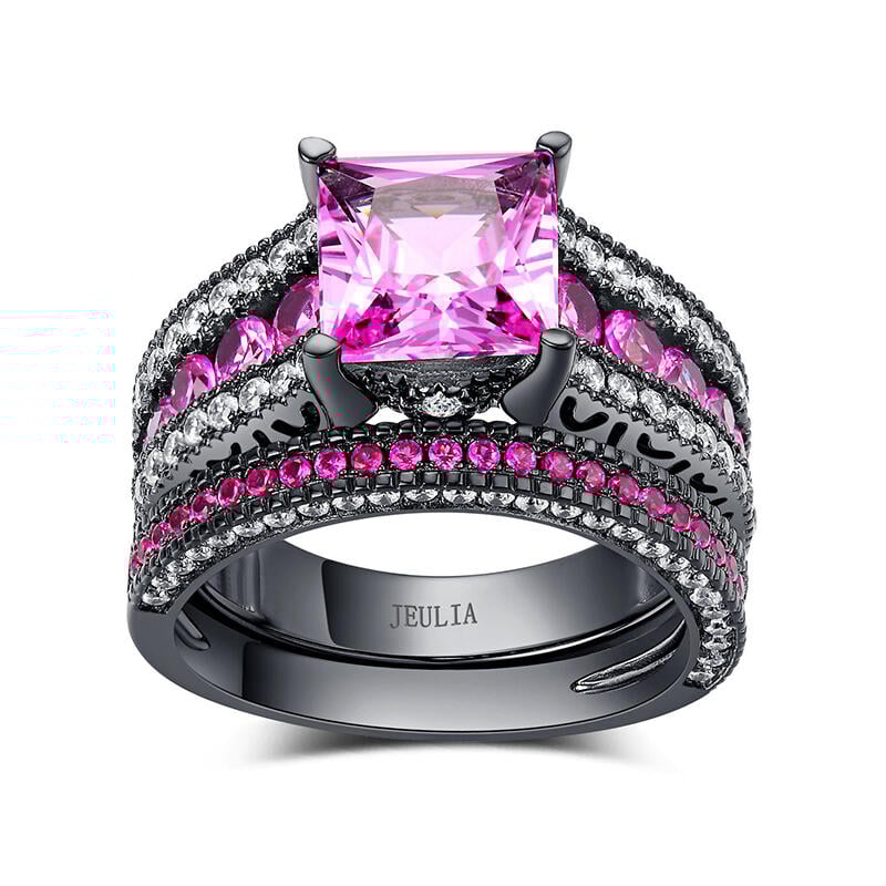 Jeulia Princess Cut Sterling Silver Ring Set