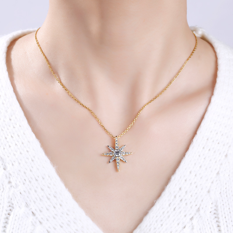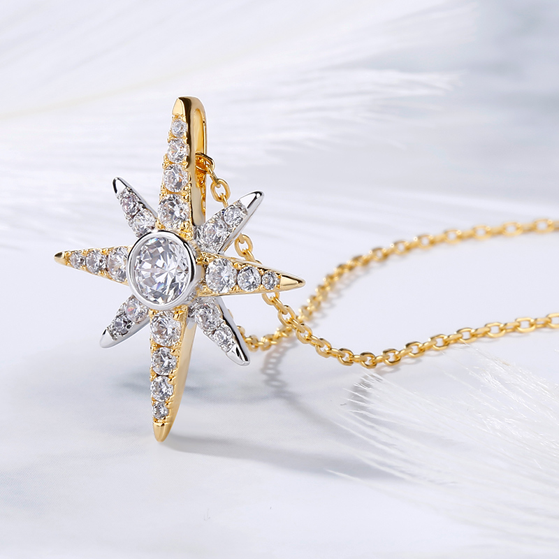 Showing simple but timeless beauty, this necklace makes an adorable gift for yourself or loved one. The star is fairy in the night sky, which is one of the most popular design elements in jewelry. This necklace is inspired by the Polaris. Crafted in sterling silver, silver and gold colors shinning together looks just like the shinning Polaris. May you have a bright and dazzling future as stars.